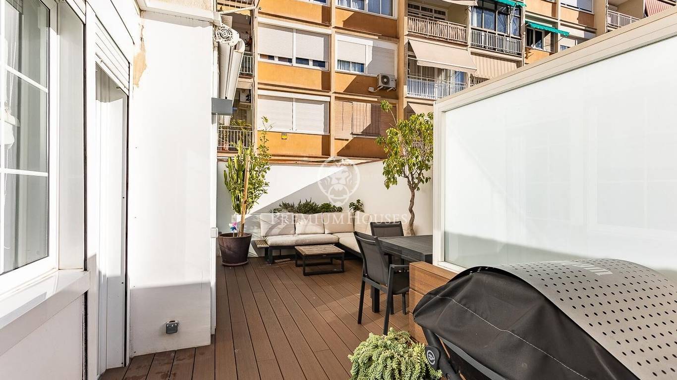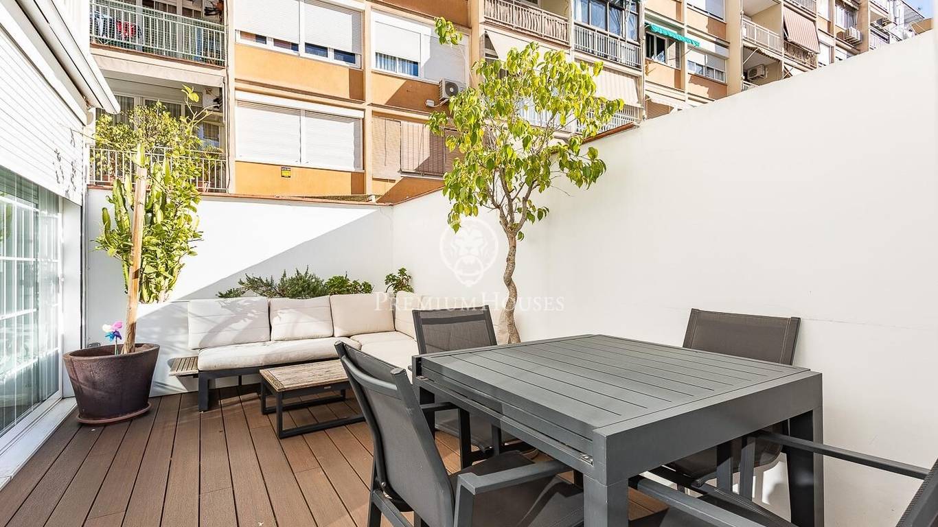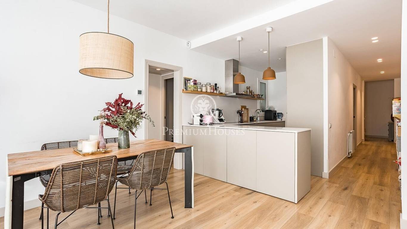 We present this exclusive south-east facing property, exceptionally bright and sunny, located in the heart of Eixample Izquierdo. Fully refurbished in 2022, the apartment offers a highly functional layout with high-quality materials and bespoke built-in furniture designed to optimise space to the fullest.The property features an open-plan living and dining area with an integrated kitchen, providing direct access to a spacious terrace overlooking the blocks inner courtyard. It comprises three bedrooms and two full bathrooms: a main bedroom with en-suite bathroom, a double bedroom, and a single bedroom currently used as a walk-in dressing room. Additionally, there is a 19 m interior courtyard used as a laundry area and storage space.The apartment is equipped with natural gas central heating, air conditioning in the living area, and ceiling fans in all bedrooms.The building offers two lifts, secure access, and a video intercom system, with the option to rent a parking space very close to the property.Located in a highly sought-after area, surrounded by a wide range of shops and services, with excellent public transport connections, and within close proximity to Escola Industrial, Hospital Universitari Sagrat Cor, and Hospital Clínic.