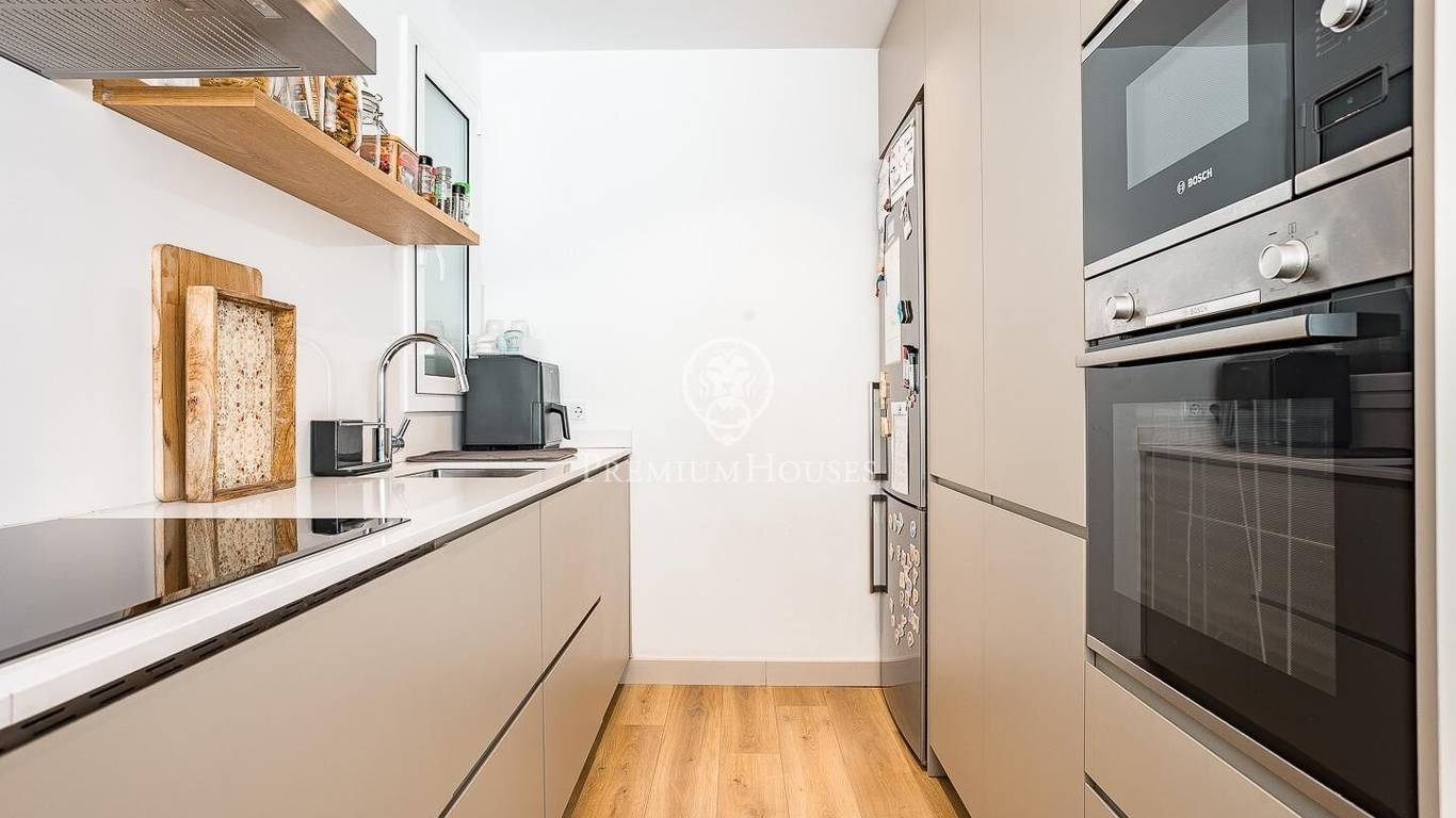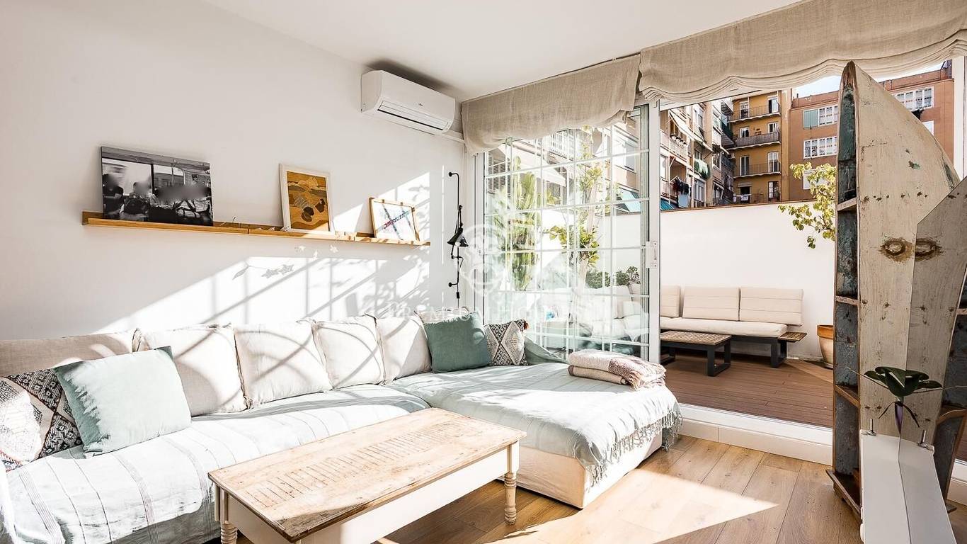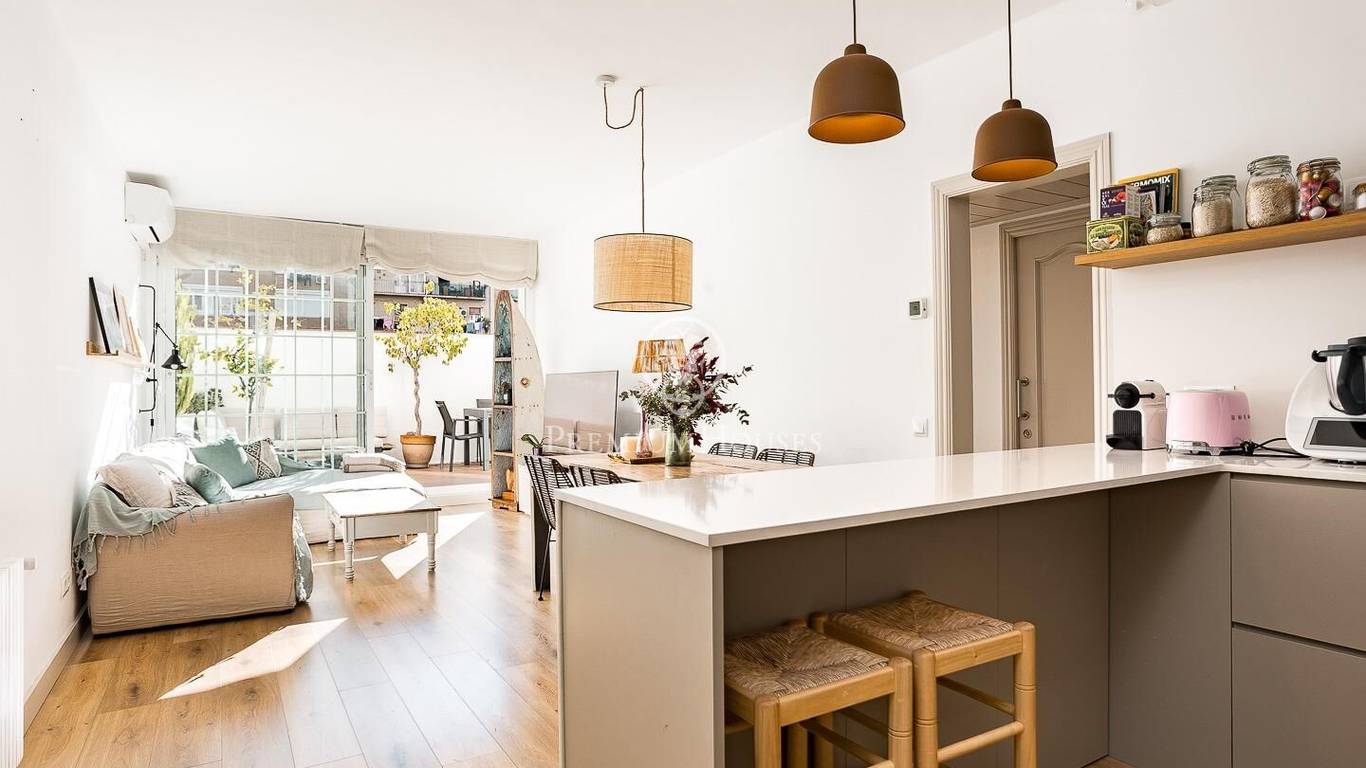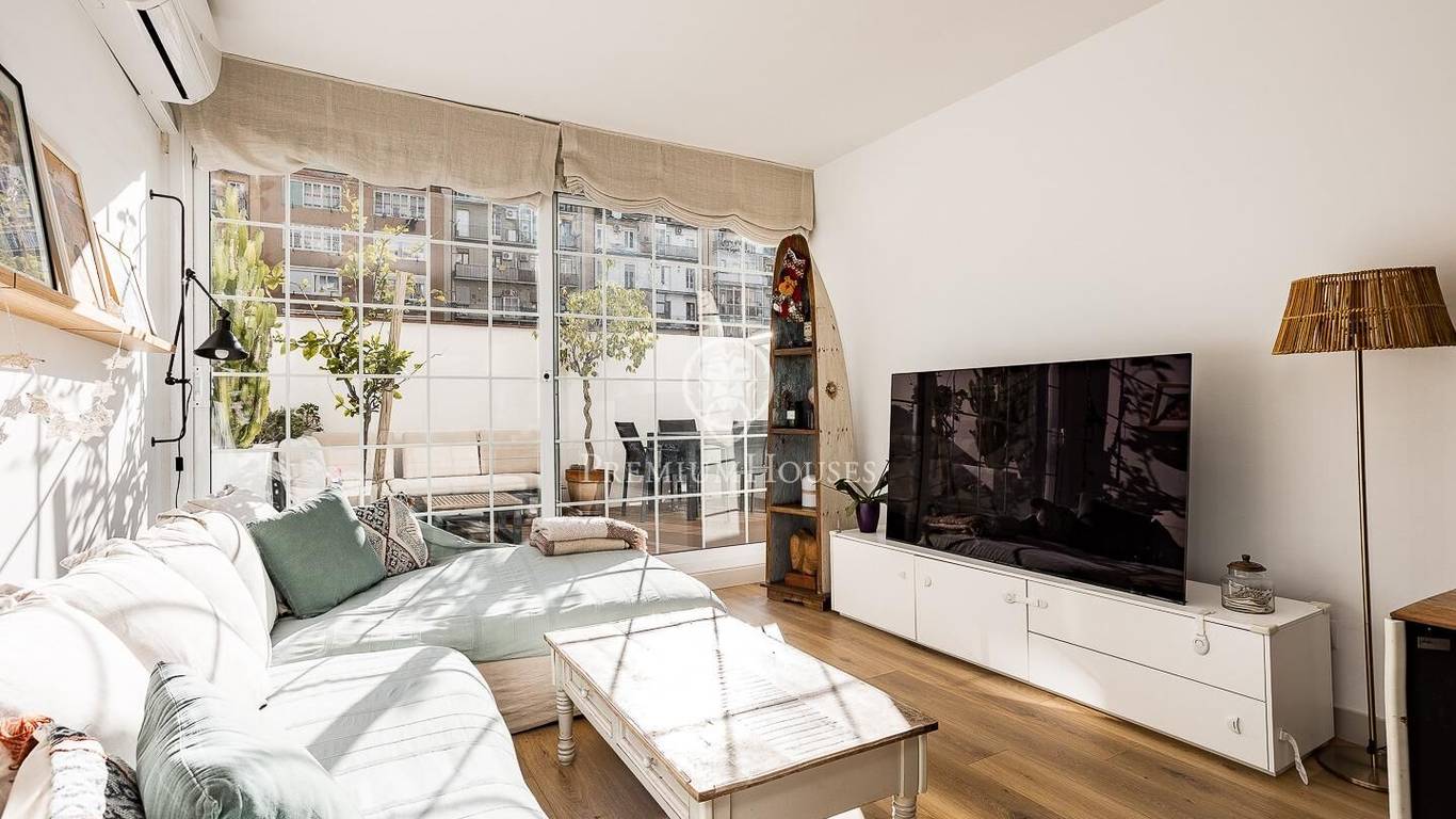 We present this exclusive south-east facing property, exceptionally bright and sunny, located in the heart of Eixample Izquierdo. Fully refurbished in 2022, the apartment offers a highly functional layout with high-quality materials and bespoke built-in furniture designed to optimise space to the fullest.The property features an open-plan living and dining area with an integrated kitchen, providing direct access to a spacious terrace overlooking the blocks inner courtyard. It comprises three bedrooms and two full bathrooms: a main bedroom with en-suite bathroom, a double bedroom, and a single bedroom currently used as a walk-in dressing room. Additionally, there is a 19 m interior courtyard used as a laundry area and storage space.The apartment is equipped with natural gas central heating, air conditioning in the living area, and ceiling fans in all bedrooms.The building offers two lifts, secure access, and a video intercom system, with the option to rent a parking space very close to the property.Located in a highly sought-after area, surrounded by a wide range of shops and services, with excellent public transport connections, and within close proximity to Escola Industrial, Hospital Universitari Sagrat Cor, and Hospital Clínic.