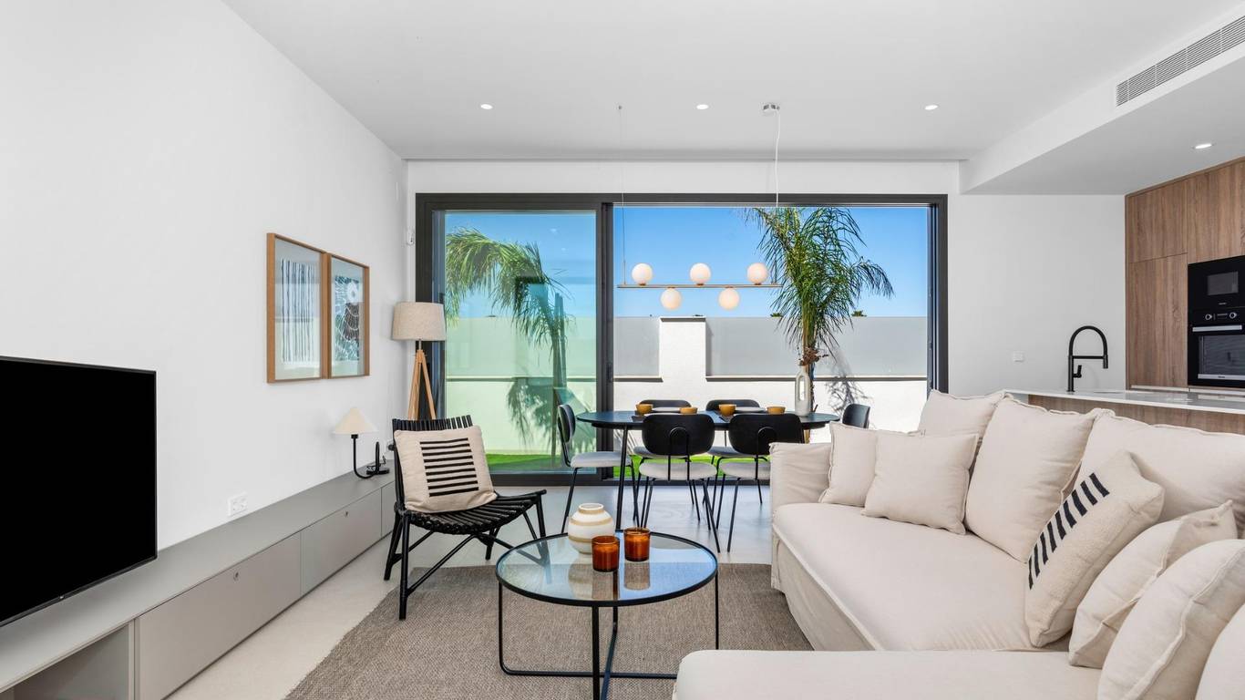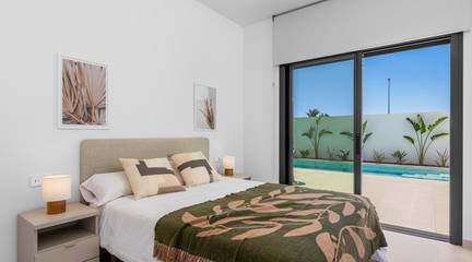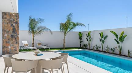New Build Villas Near Serena Golf in Los AlcazaresModern Villas in a Prime Coastal and Golf LocationThis exclusive new build residential project offers modern villas located in Los Alcazares, just a short distance from the prestigious Serena Golf and only 1.2 km from the sandy beaches of the Mar Menor. Set in one of the most attractive areas of the Region of Murcia, these homes combine contemporary design, comfort and an excellent location close to the sea, golf and all daily services. Los Alcazares is a well established coastal town known for its relaxed lifestyle, long promenade, water sports and mild climate throughout the year.Single Level Design with Private Outdoor SpacesThe development features stylish villas with 3 bedrooms and 2 bathrooms, available in two different built sizes of approximately 106 sqm and 130 sqm. The larger model also includes an additional guest toilet. All villas are designed on a single floor, offering practical and comfortable living. The open plan kitchen, dining and living area connects directly to a terrace and private garden with swimming pool, creating an ideal space for indoor and outdoor living. Each property also includes a private solarium and on plot parking.High Quality Finishes and Modern EquipmentThese villas are built with high quality materials and equipped with modern features. The fully fitted kitchens are available in white gloss or wood finish and include quartz worktops, stainless steel sink, induction hob with integrated extractor, oven, microwave, washing machine, integrated fridge and dishwasher. Bathrooms are fitted with furniture, mirrors, lighting and electric towel heaters. Additional features include electric blinds in bedrooms, LED lighting throughout the property and a complete ducted air conditioning system by Fujitsu.Private Pool and Energy Efficient ComfortEach villa includes a private swimming pool finished with blue ceramic tiles, integrated steps and white LED lighting. The pool is prepared with pre installation for a heat pump. The combination of efficient climate control, modern construction and thoughtful design ensures comfort all year round.Excellent Connectivity and Key DistancesThe villas are within walking distance of the town centre of Los Alcazares and very close to Serena Golf. The beach is approximately 1.2 km away. Cartagena city is around 20 km away, offering a rich cultural and gastronomic scene. Murcia Corvera International Airport is about 22 km away, and Alicante Airport is approximately 90 km. Several golf courses and marinas are also nearby, making this location ideal for both permanent living and holidays.Your Ideal Home by the Sea and GolfIf you are looking for a modern new build villa near the beach and golf in Los Alcazares, contact us today for more information or to arrange a private viewing.
