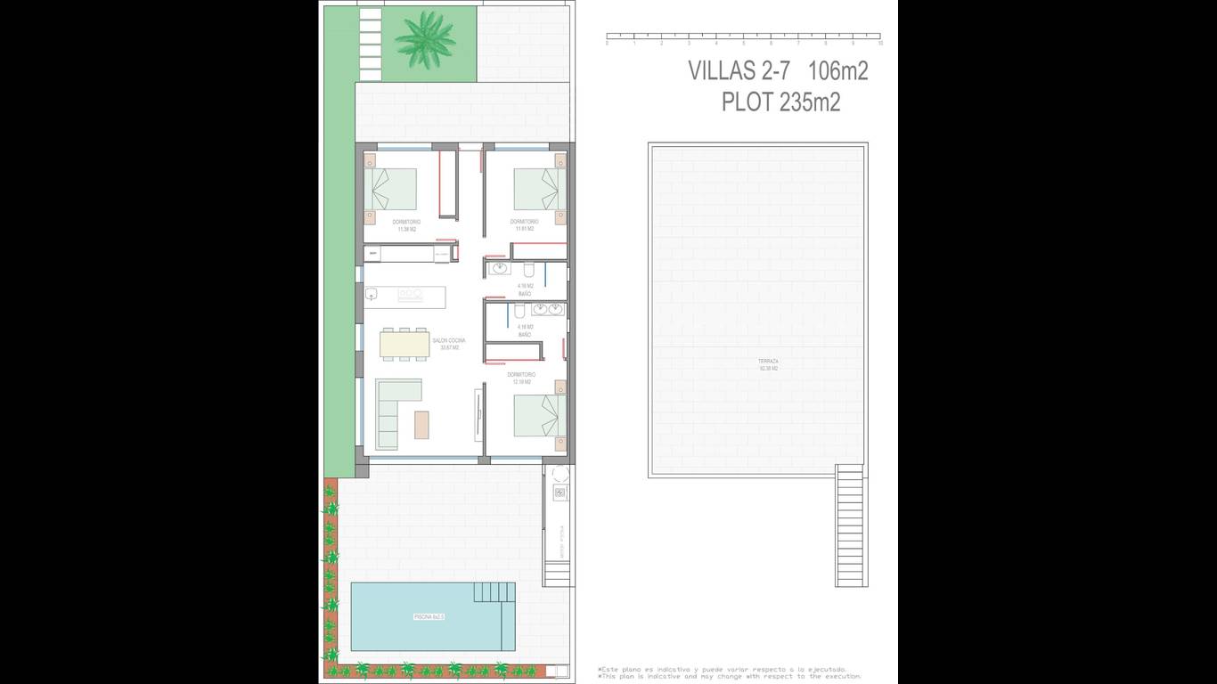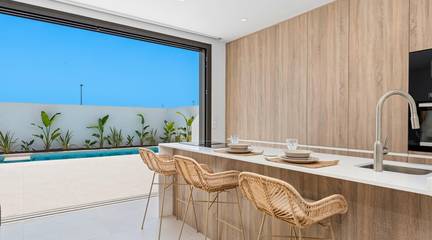New Build Villas Near Serena Golf in Los AlcazaresModern Villas in a Prime Coastal and Golf LocationThis exclusive new build residential project offers modern villas located in Los Alcazares, just a short distance from the prestigious Serena Golf and only 1.2 km from the sandy beaches of the Mar Menor. Set in one of the most attractive areas of the Region of Murcia, these homes combine contemporary design, comfort and an excellent location close to the sea, golf and all daily services. Los Alcazares is a well established coastal town known for its relaxed lifestyle, long promenade, water sports and mild climate throughout the year.Single Level Design with Private Outdoor SpacesThe development features stylish villas with 3 bedrooms and 2 bathrooms, available in two different built sizes of approximately 106 sqm and 130 sqm. The larger model also includes an additional guest toilet. All villas are designed on a single floor, offering practical and comfortable living. The open plan kitchen, dining and living area connects directly to a terrace and private garden with swimming pool, creating an ideal space for indoor and outdoor living. Each property also includes a private solarium and on plot parking.High Quality Finishes and Modern EquipmentThese villas are built with high quality materials and equipped with modern features. The fully fitted kitchens are available in white gloss or wood finish and include quartz worktops, stainless steel sink, induction hob with integrated extractor, oven, microwave, washing machine, integrated fridge and dishwasher. Bathrooms are fitted with furniture, mirrors, lighting and electric towel heaters. Additional features include electric blinds in bedrooms, LED lighting throughout the property and a complete ducted air conditioning system by Fujitsu.Private Pool and Energy Efficient ComfortEach villa includes a private swimming pool finished with blue ceramic tiles, integrated steps and white LED lighting. The pool is prepared with pre installation for a heat pump. The combination of efficient climate control, modern construction and thoughtful design ensures comfort all year round.Excellent Connectivity and Key DistancesThe villas are within walking distance of the town centre of Los Alcazares and very close to Serena Golf. The beach is approximately 1.2 km away. Cartagena city is around 20 km away, offering a rich cultural and gastronomic scene. Murcia Corvera International Airport is about 22 km away, and Alicante Airport is approximately 90 km. Several golf courses and marinas are also nearby, making this location ideal for both permanent living and holidays.Your Ideal Home by the Sea and GolfIf you are looking for a modern new build villa near the beach and golf in Los Alcazares, contact us today for more information or to arrange a private viewing.