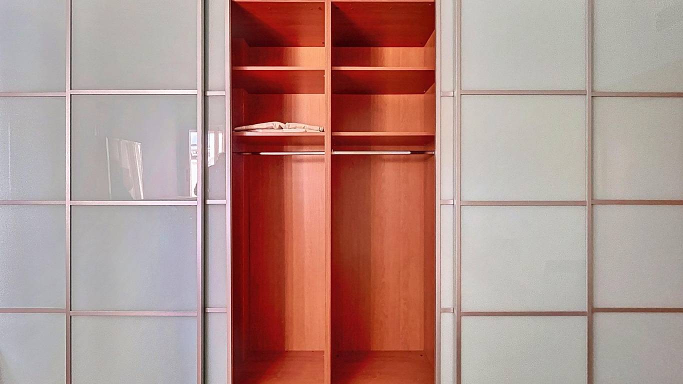 One single bedroom and one double bedroom with built-in wardrobes, where visual order brings a sense of calm.