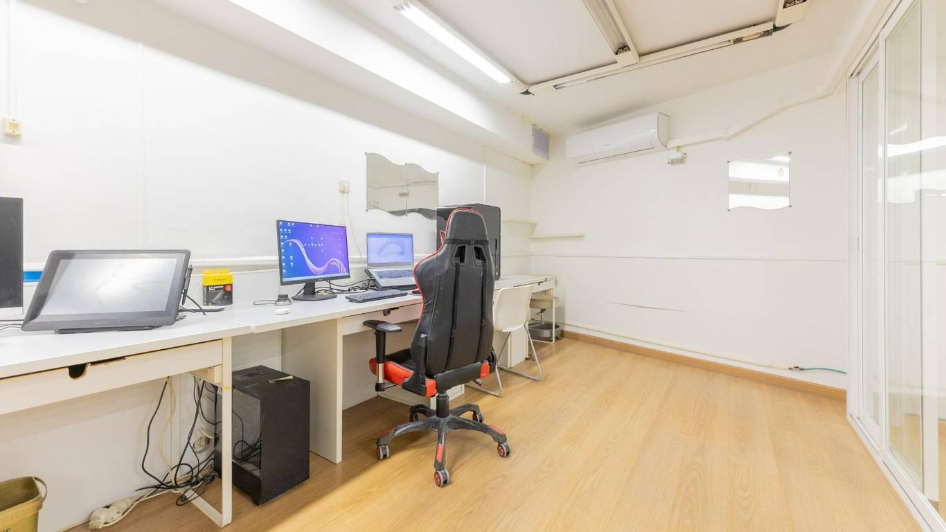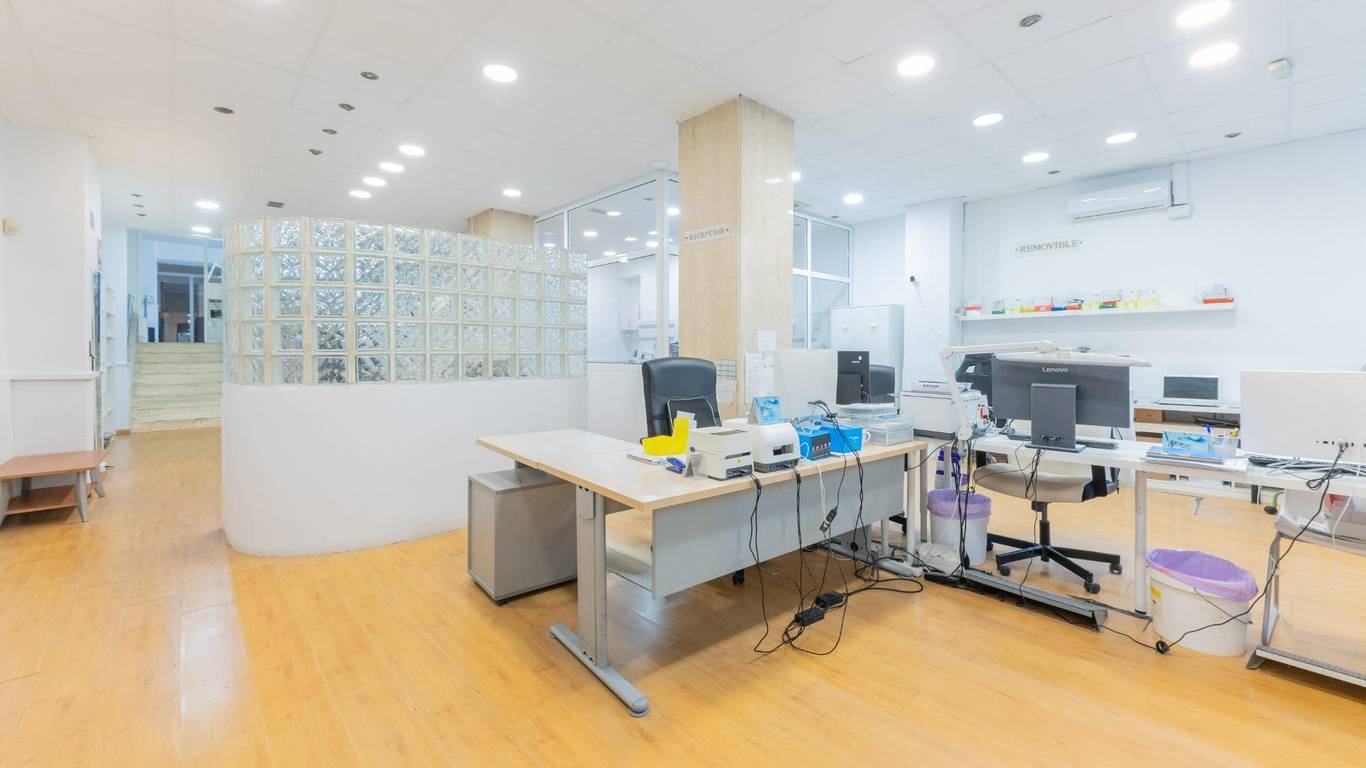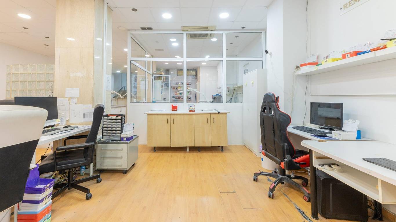 Local de tres plantas y de grandes dimensiones. Al acceder, encontramos una zona de recepción con amplias salas de trabajo que ofrecen múltiples posibilidades de uso, hay 10 estancias pero son con paneles móviles que se pueden quitar y quedara diáfano. Además, dispone de un despacho independiente, ideal para gestión administrativa o reuniones privadas, hay mucha armariada. La propiedad también cuenta con dos cuartos de baño y una gran zona de almacén, perfecto para almacenamiento y logística. Se distribuye en 3 plantas, una a pie de calle de aprox 87.59m2, la planta primera es de 103.69m2 y la planta inferior de 103.20m2 . Dispone de dos baños .