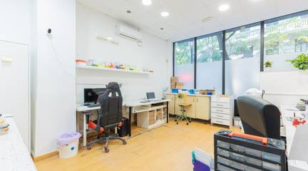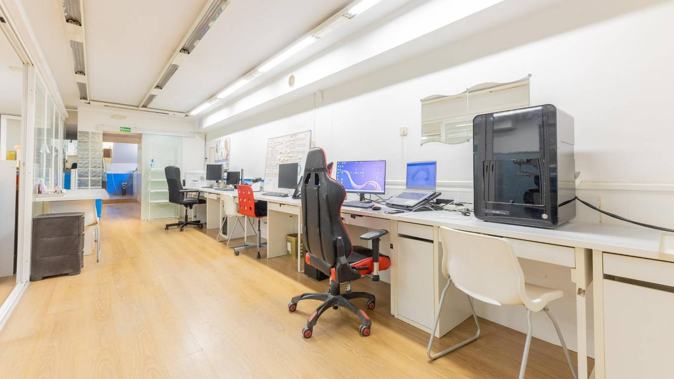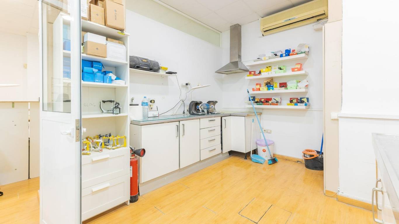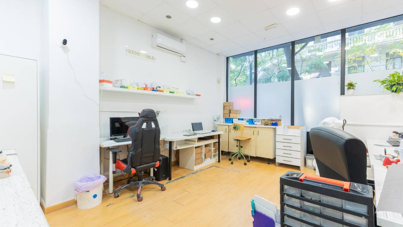 Local de tres plantas y de grandes dimensiones. Al acceder, encontramos una zona de recepción con amplias salas de trabajo que ofrecen múltiples posibilidades de uso, hay 10 estancias pero son con paneles móviles que se pueden quitar y quedara diáfano. Además, dispone de un despacho independiente, ideal para gestión administrativa o reuniones privadas, hay mucha armariada. La propiedad también cuenta con dos cuartos de baño y una gran zona de almacén, perfecto para almacenamiento y logística. Se distribuye en 3 plantas, una a pie de calle de aprox 87.59m2, la planta primera es de 103.69m2 y la planta inferior de 103.20m2 . Dispone de dos baños .