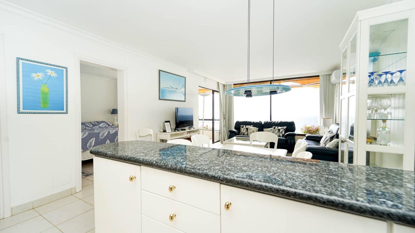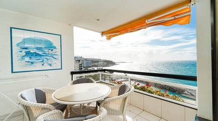 This frontline seafront property offers a truly privileged living experience within the highly regarded Montemarina complex, located in the peaceful and sought-after area of Patalavaca, in the south of Gran Canaria. Situated on an elevated floor, the connection with the surroundings is especially unique, with open views blending seamlessly into the blue of the Atlantic Ocean and the sky, creating an atmosphere of exceptional serenity.