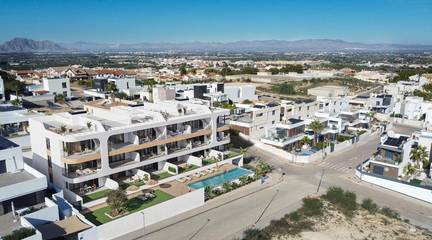 New Build Apartments in Benijofar Modern Living in a Prime LocationExclusive New Development on the Costa Blanca SouthThis new residential development consists of 18 modern apartments located at the entrance of Benijofar, within walking distance of the town centre. Set in one of the fastest growing areas of the Costa Blanca South, the project combines contemporary architecture, quality materials and a strategic location, ideal for both permanent living and investment.Apartment Types to Suit Every LifestyleThe development offers spacious apartments with three bedrooms and two bathrooms, including one ensuite. Buyers can choose between ground floor homes with large terraces and private gardens, middle floor apartments with generous terraces, or penthouses with terrace and private solarium. The solarium include pre installation for a summer kitchen, perfect for enjoying the Mediterranean climate.Modern Design and High Level ComfortEach apartment has been carefully designed to provide bright and open living spaces with a modern and functional layout. The homes feature an open plan living and dining area, a fully fitted kitchen with upper and lower cabinets, and high quality finishes throughout. The bedrooms are spacious and comfortable, while the bathrooms are fitted with modern materials and elegant details.The residential complex includes a communal swimming pool and landscaped gardens, creating a relaxing environment for residents. All homes are equipped with pre installation for ducted air conditioning and heating, exterior carpentry with thermal break and double glazing, aerothermal system for hot water, and a reinforced security entrance door. Each apartment also includes a private parking space and storage room in the basement, with lift access to all floors.Benijofar A Charming Town with Full ServicesBenijofar is a well established Spanish town that offers a perfect balance between traditional charm and modern living. The town centre features local shops, supermarkets, pharmacies, restaurants and a welcoming atmosphere all year round. Nature lovers can enjoy nearby green areas and walking routes, while golf courses and leisure facilities are just a short drive away.Excellent Connections and Key DistancesGuardamar del Segura beaches are approximately 9 km away. La Finca Golf and La Marquesa Golf courses are around 6 km from the development. Water parks in Rojales and Torrevieja are located at approximately 4 km and 12 km. Zenia Boulevard shopping centre is about 17 km away. Alicante International Airport is approximately 35 km, offering regular flights across Europe.An Ideal Home or Investment OpportunityThanks to its modern design, excellent location and strong rental demand in the area, these apartments are ideal as a permanent residence, holiday home or smart investment on the Costa Blanca.Contact Us TodayDiscover your new apartment in Benijofar. Contact us now for more information or to arrange a private viewing.