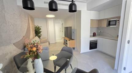 Sunrise is a modern apartment complex with communal swimming pool on the roof terrace in the center of Torrevieja, perfect for both holiday use and permanent residence. The complex is just a 40-minute drive from Alicante airport.