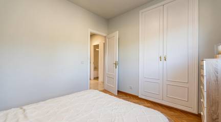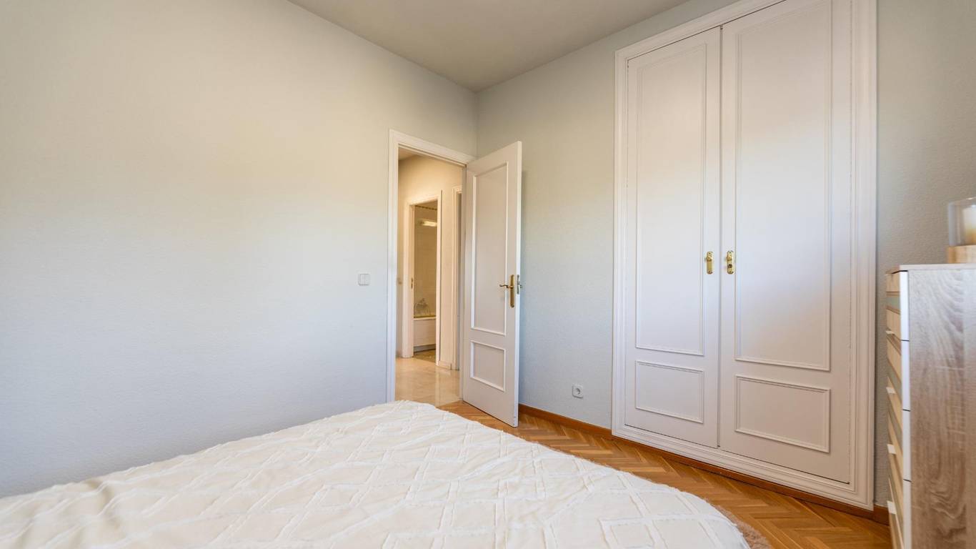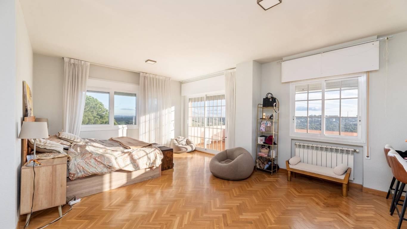 Zona de descanso con dos dormitorios de buen tamaño que comparten un baño completo. La suite principal, de grandes dimensiones, cuenta con vestidor, baño completo y terraza privada con vistas despejadas, un espacio perfecto para relajarse y desconectar.