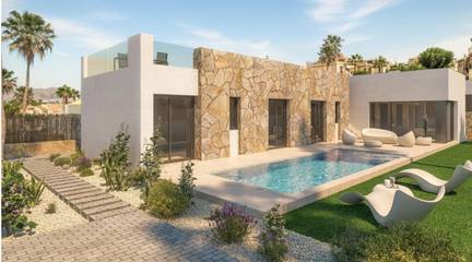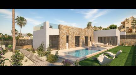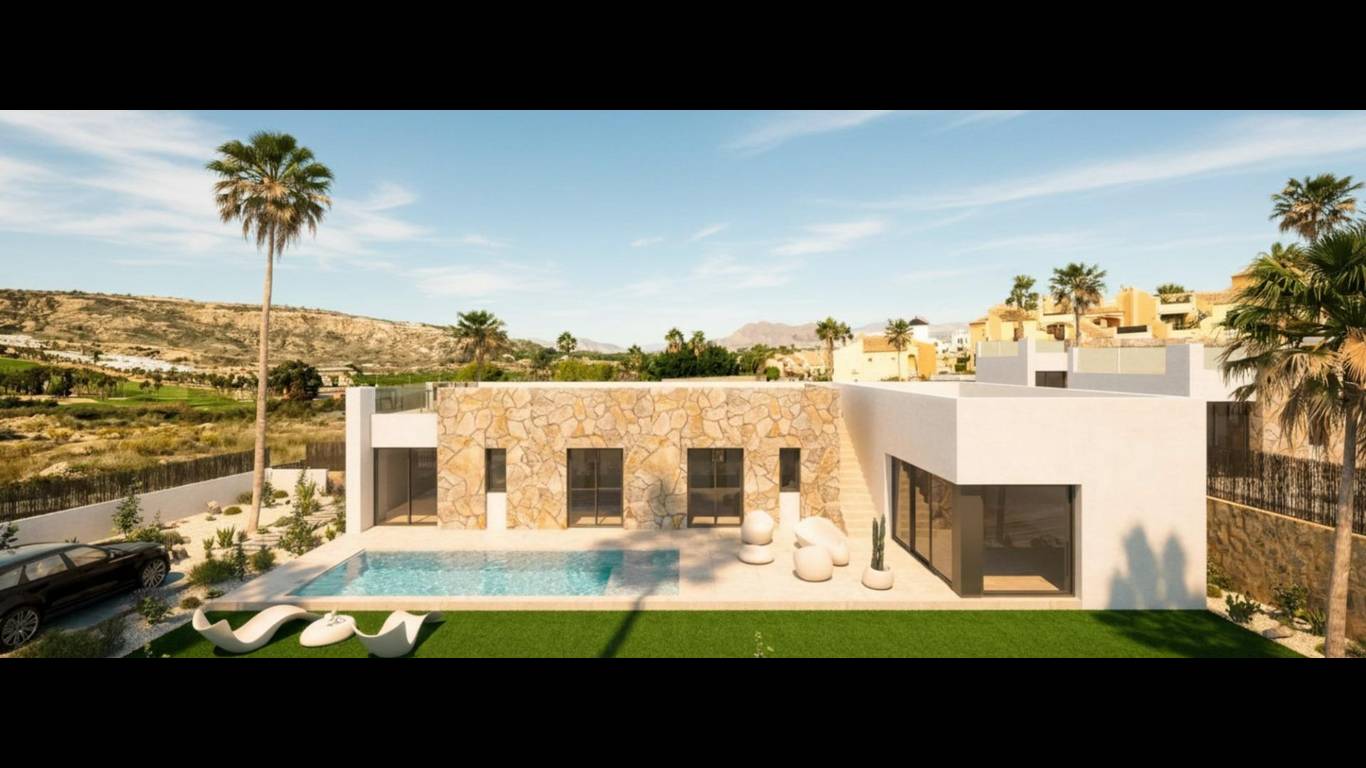 Luxury New Build Villas Next to La Finca Golf in AlgorfaExclusive Villas in a Prestigious Golf EnvironmentThis boutique development of only 8 luxury independent villas is located in second line of the renowned La Finca Golf Resort in Algorfa. Set in a peaceful and well established residential area, these new build villas offer privacy, comfort and an exceptional Mediterranean lifestyle surrounded by nature and golf landscapes. The location is ideal for those seeking tranquility while remaining close to services, leisure options and the best beaches of the Costa Blanca.Algorfa is a charming Spanish town known for its relaxed atmosphere, traditional restaurants and proximity to top golf resorts. La Finca Golf is one of the most prestigious golf complexes in the area, offering an 18 hole championship course, hotel, spa, sports facilities and quality dining options.Modern Single Level Design with Mediterranean CharacterAll villas are designed on one single level, maximizing comfort and functionality. The L shaped layout clearly separates the living and kitchen areas from the sleeping quarters, creating bright and well balanced interiors. Large windows allow natural light to flow throughout the home and connect seamlessly with the outdoor areas.Each villa offers 3 spacious bedrooms and 2 modern bathrooms, built on generous plots of over 400 sqm. Outdoor spaces include a private swimming pool, landscaped garden with automatic irrigation, on plot parking and a large private solarium ideal for enjoying the sun all year round.High Quality Features and Energy EfficiencyThese villas combine traditional Mediterranean inspiration with contemporary architecture and modern technology. Homes are delivered with aerothermal system for hot water, preinstallation of ducted air conditioning, home automation system, aluminum windows with electric shutters and fully equipped kitchens with appliances.Bathrooms include furniture, shower screens and underfloor heating, ensuring comfort and quality in every detail. The overall construction standards focus on efficiency, design and long term value.Strategic Location Close to Beaches and ServicesLa Finca Golf Resort offers a healthy and relaxed lifestyle with sports and leisure facilities nearby. The beaches of Guardamar del Segura are approximately 14 km away. Torrevieja and Orihuela Costa with shopping centers and marinas are within 15 to 18 km. Alicante International Airport is located around 35 km away, providing excellent connections across Europe. Several other golf courses can be reached within 10 km.An Ideal Home or Investment on the Costa BlancaThese luxury villas represent a unique opportunity to own a modern home in one of the most sought after golf locations in southern Costa Blanca. Perfect as a permanent residence, holiday home or investment property. Contact us today for more information or to arrange a private viewing of this exclusive development.