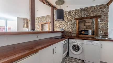 The flat features two comfortable bedrooms and a full bathroom with a window, ideal for enjoying natural light. The kitchen is fitted with brand-new appliances, perfect for cooking enthusiasts. The livingdining room has pre-installation for a fireplace, creating a warm and cosy atmosphere for family gatherings. In addition, the new windows and electric radiators ensure a comfortable home all year round.