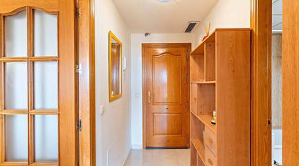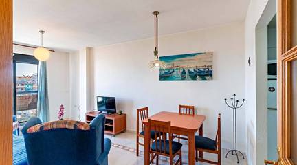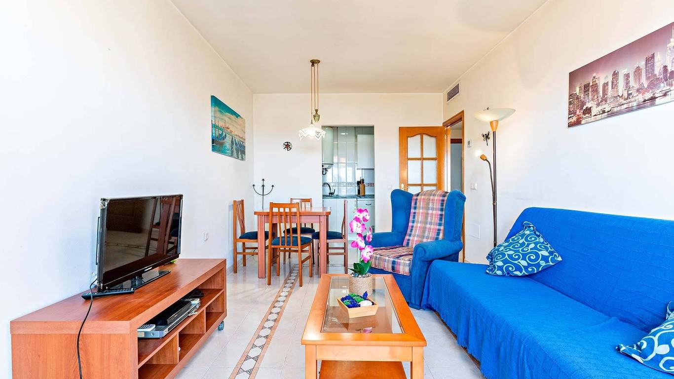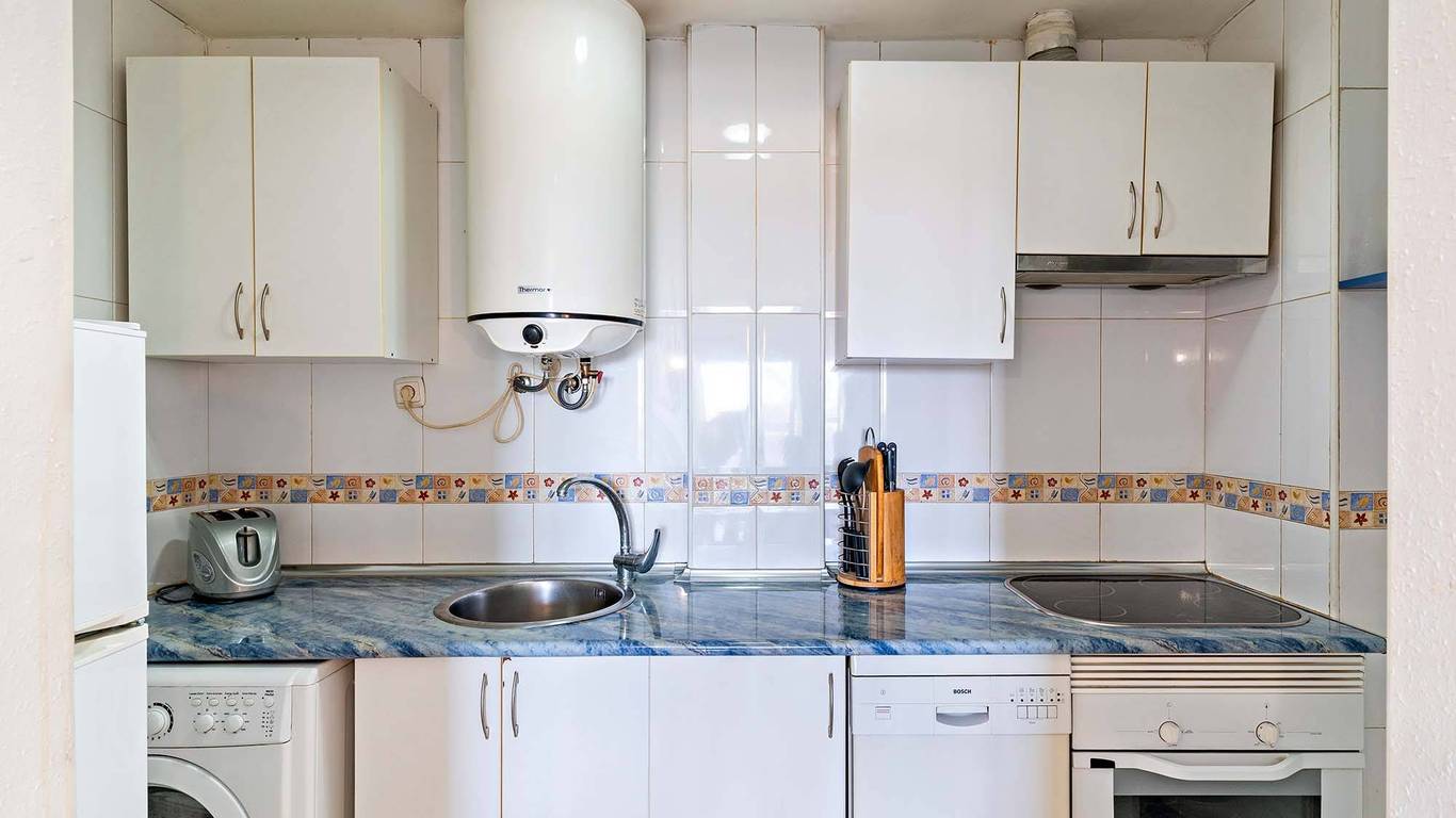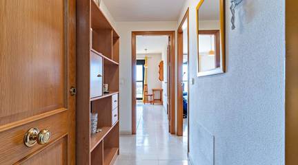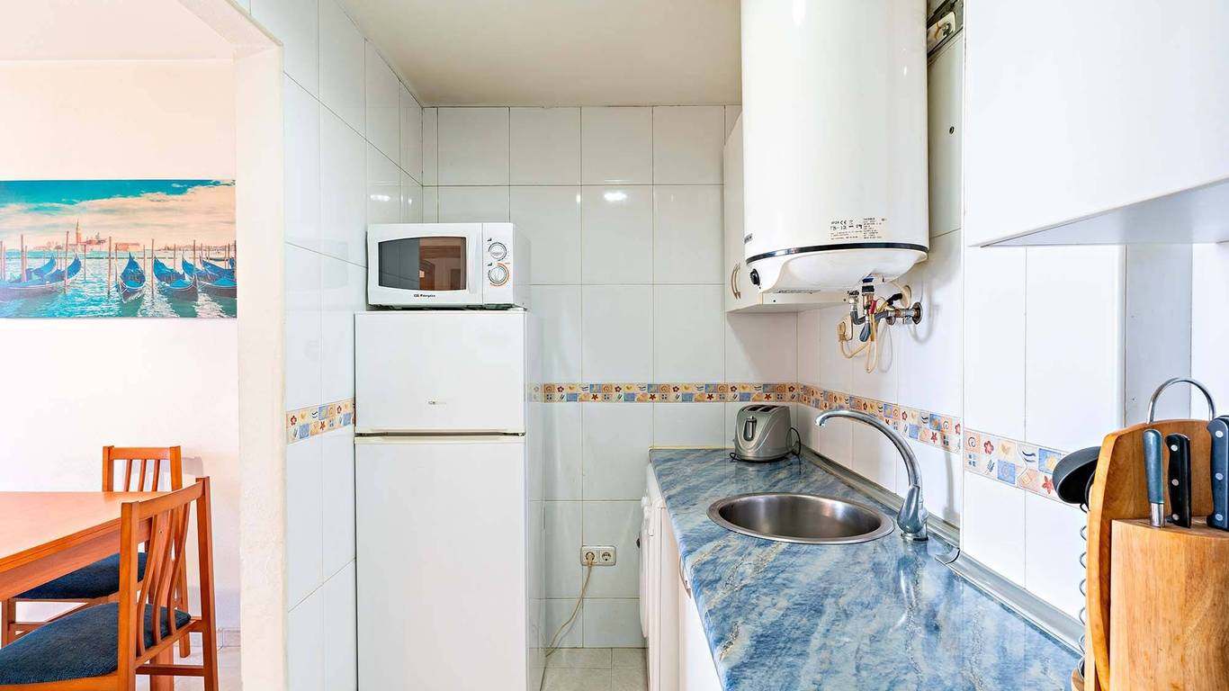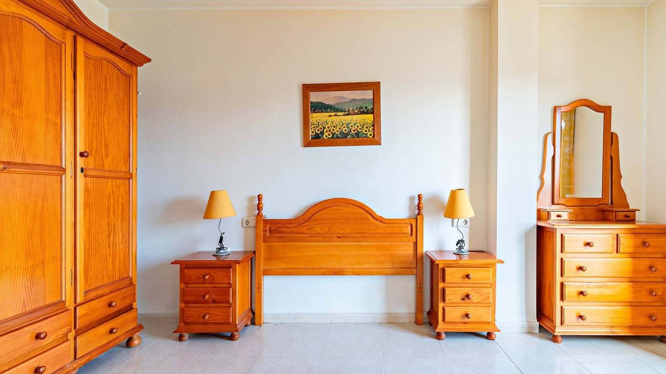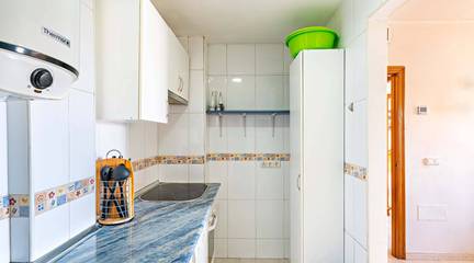 Un gran dormitorio, salón comedor, cocina amueblada con electrodomésticos y baño completo con cochera en el mismo residencial y de fácil acceso. A pesar de ser un piso de un dormitorio, tiene más metros útiles que algunos de dos dormitorios. Dos ventanales hasta el suelo le dan una luminosidad y unas vistas al mar y al Cabo de Gata envidiables.