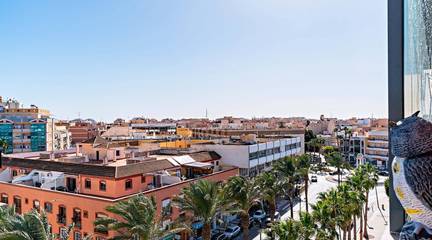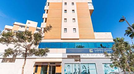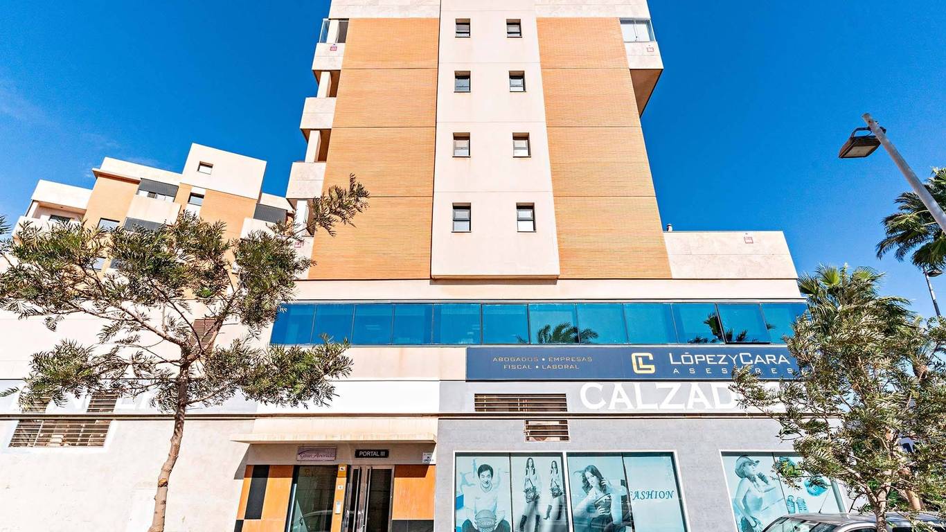 A la venta este semi ático en quinta planta en uno de los edificios más modernos de Roquetas de Mar, edificio Gran Avenida, en la calle López Ibor esquina con Carretera de Alicún, junto al Mercado Central de Abastos y frente al nuevo gimnasio Sinergym de reciente apertura (Herlo y Eustaquio (Michelín))