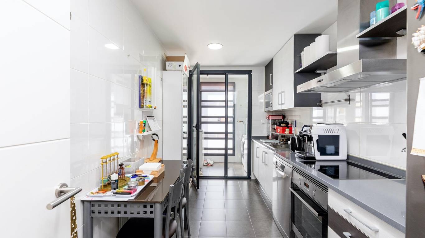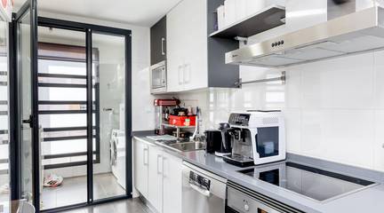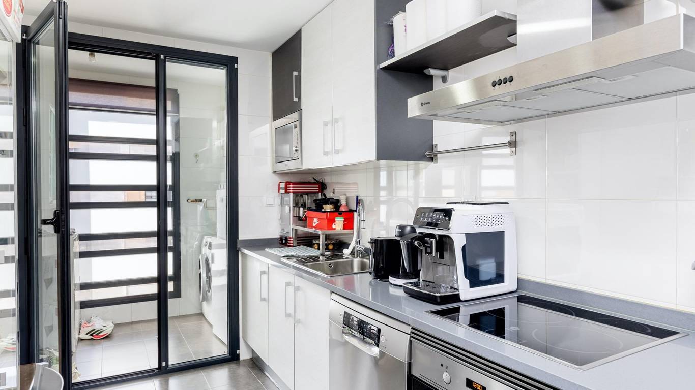 El salón es acogedor y se integra maravillosamente con una cocina independiente completamente equipada, perfecta para los amantes de la gastronomía un espacio independiente de lavanderia. Desde el salón y habitación principal podrás acceder a un amplio balcón donde disfrutarás relajantes veladas al aire libre.