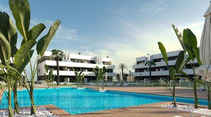 New Build Tourist Licensed Apartments with Lagoon Views in El Raso Guardamar del SeguraExclusive Gated Residential Complex in El RasoThis new build gated residential complex is located in El Raso, a well established and highly demanded residential area of Guardamar del Segura. Surrounded by nature and close to all essential services, El Raso is known for its peaceful environment, proximity to the Natural Park of La Mata Lagoon and excellent connections to the coast. This location offers the perfect balance between tranquility, leisure and investment potential on the Costa Blanca South.Modern Tourist Licensed Apartments with Flexible UseThe development will consist of 108 new build tourist licensed apartments and penthouses distributed across ground floor homes with private garden, first floor apartments with spacious terraces, and second floor units with terrace and private solarium. All properties are designed to maximize natural light, outdoor living and views towards green areas and the Laguna de La Mata.One of the key highlights of this project is that all properties come with a tourist rental license. Owners can enjoy personal use for up to 4 months per year and rent the property for the rest of the year, generating rental income managed by a professional rental company for complete peace of mind.Fully Furnished and Ready to Move In HomesAll apartments will be delivered fully furnished and ready to move in. The price includes furniture, lighting, electrical appliances and fully finished bathrooms, making this an ideal turnkey investment. Buyers can choose between 2 or 3 bedroom layouts, all with 2 bathrooms. The 3 bedroom apartments are corner units, offering additional privacy and enhanced views. Properties are available in south, east and west orientations.Resort Style Communal AreasThe residential complex features extensive communal facilities designed for relaxation and leisure. Residents will enjoy a large swimming pool, landscaped gardens, reception and meeting area, outdoor gym, petanque area, mini golf and a wellness spa. Each property also includes a private parking space and storage room in the basement, accessible by lift or stairs.Prime Location Close to Beach Golf and ServicesPlaya del Moncayo is just 5 km away, reachable in 10 minutes by car or 15 minutes by bike. Guardamar town center is 4 km away, while Ciudad Quesada dining and leisure areas are only 5 km away. Habaneras Shopping Centre in Torrevieja is located 8 km from the complex.Golf lovers will appreciate the proximity to La Finca Golf in Algorfa at 12 km, La Marquesa Golf at 6 km and Vistabella Golf at 18 km. Alicante International Airport is 30 km away, and Murcia Corvera Airport is approximately 75 km away.A Smart Investment and Mediterranean LifestyleThese new build tourist licensed apartments in El Raso Guardamar del Segura offer an exceptional combination of lifestyle, location and rental potential. Contact us today to receive more information or secure your new property on the Costa Blanca.