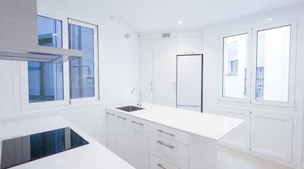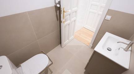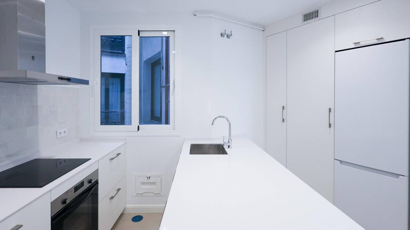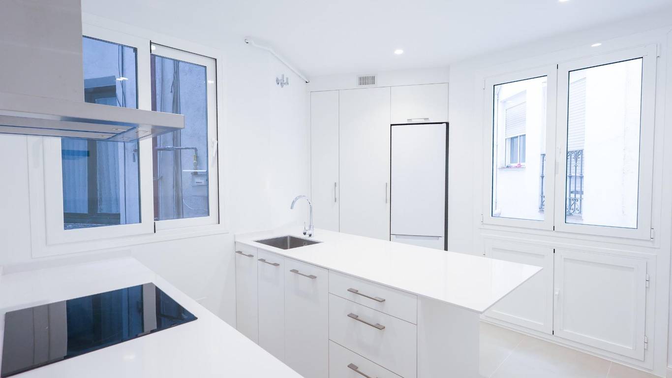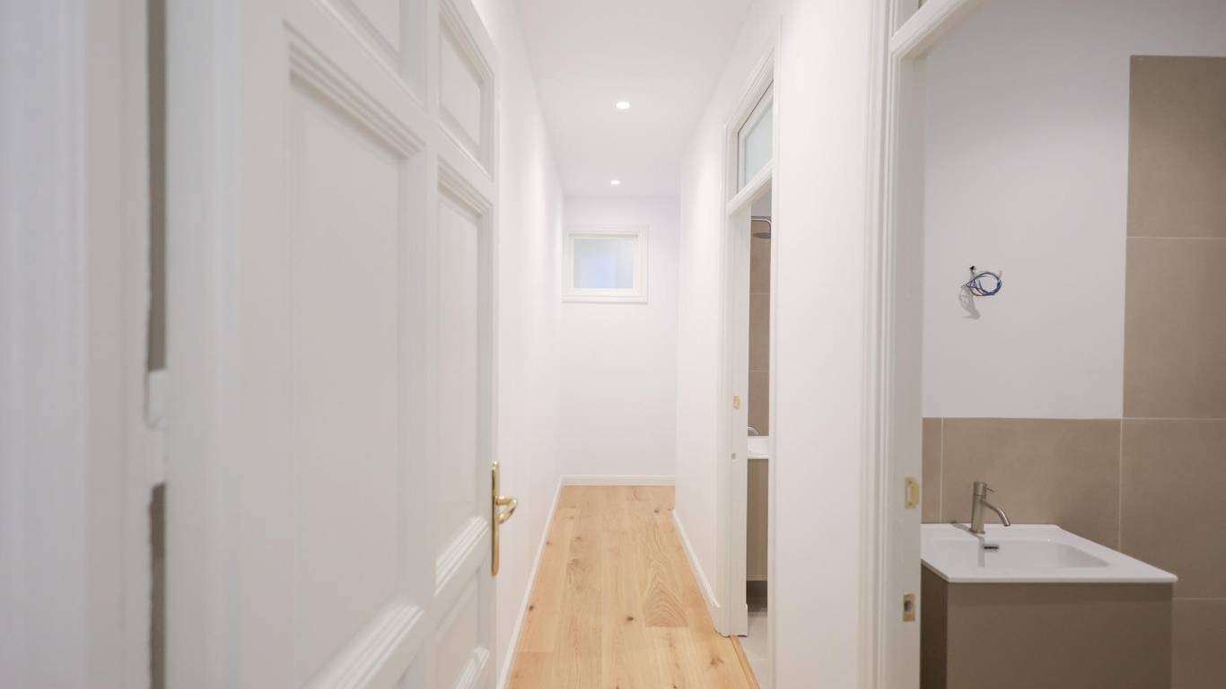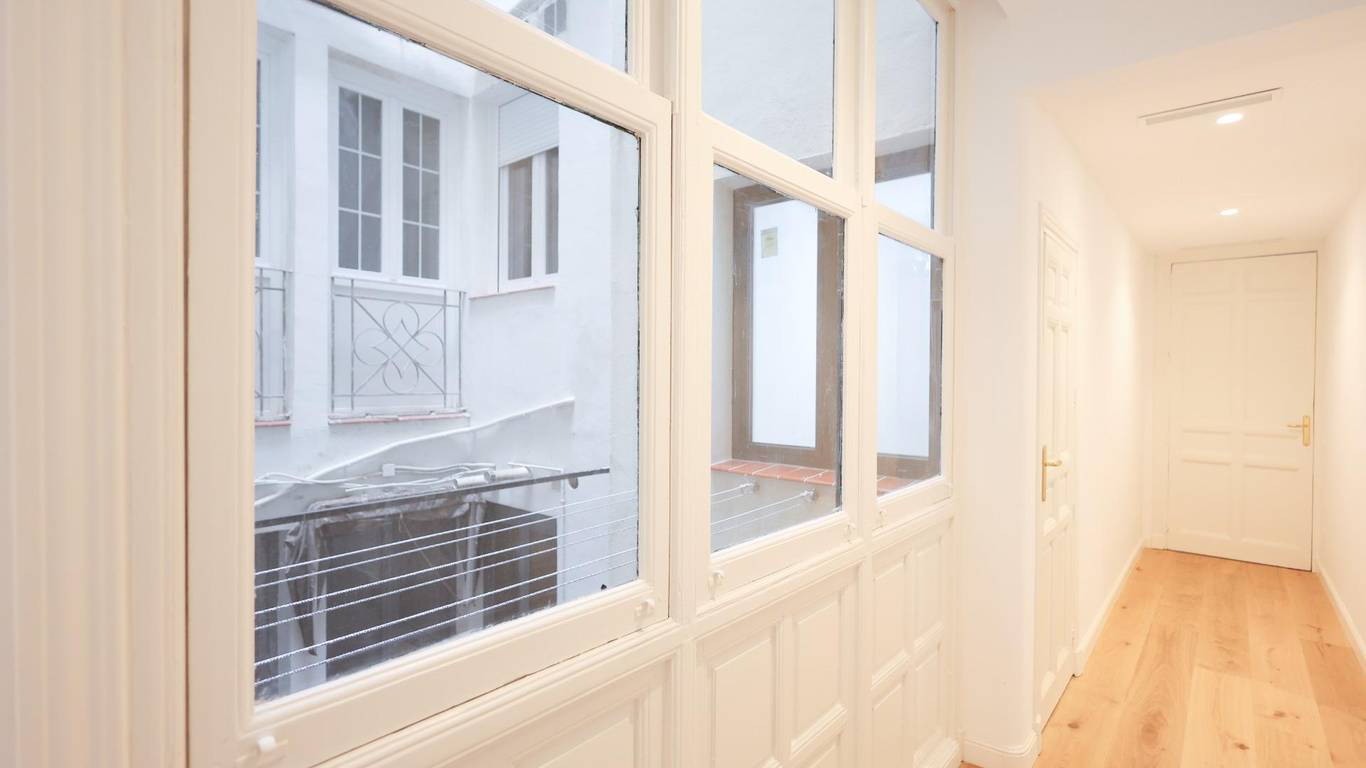 La propiedad incorpora dos baños completos y una cocina equipada de alto nivel, conectando la funcionalidad actual con el encanto histórico de cada estancia. Las ventanas han sido sustituidas por sistemas de máximo aislamiento acústico con climalit, complementadas por contraventanas exteriores de hierro y contraventanas interiores de madera, garantizando confort y eficiencia contemporánea sin sacrificar estilo.