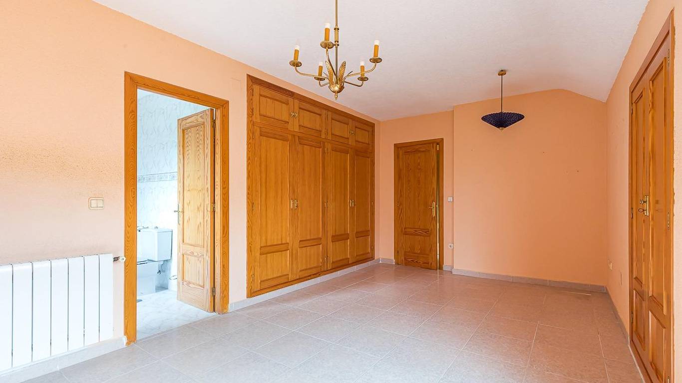 En la planta superior encontramos tres dormitorios secundarios, un baño que da uso a estos y un dormitorio principal con baño en suite ademas de una terraza con vistas a la Sierra de Madrid. Todas las estancias son amplias y luminosas, pensadas para el confort diario y la vida en familia.