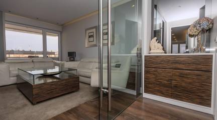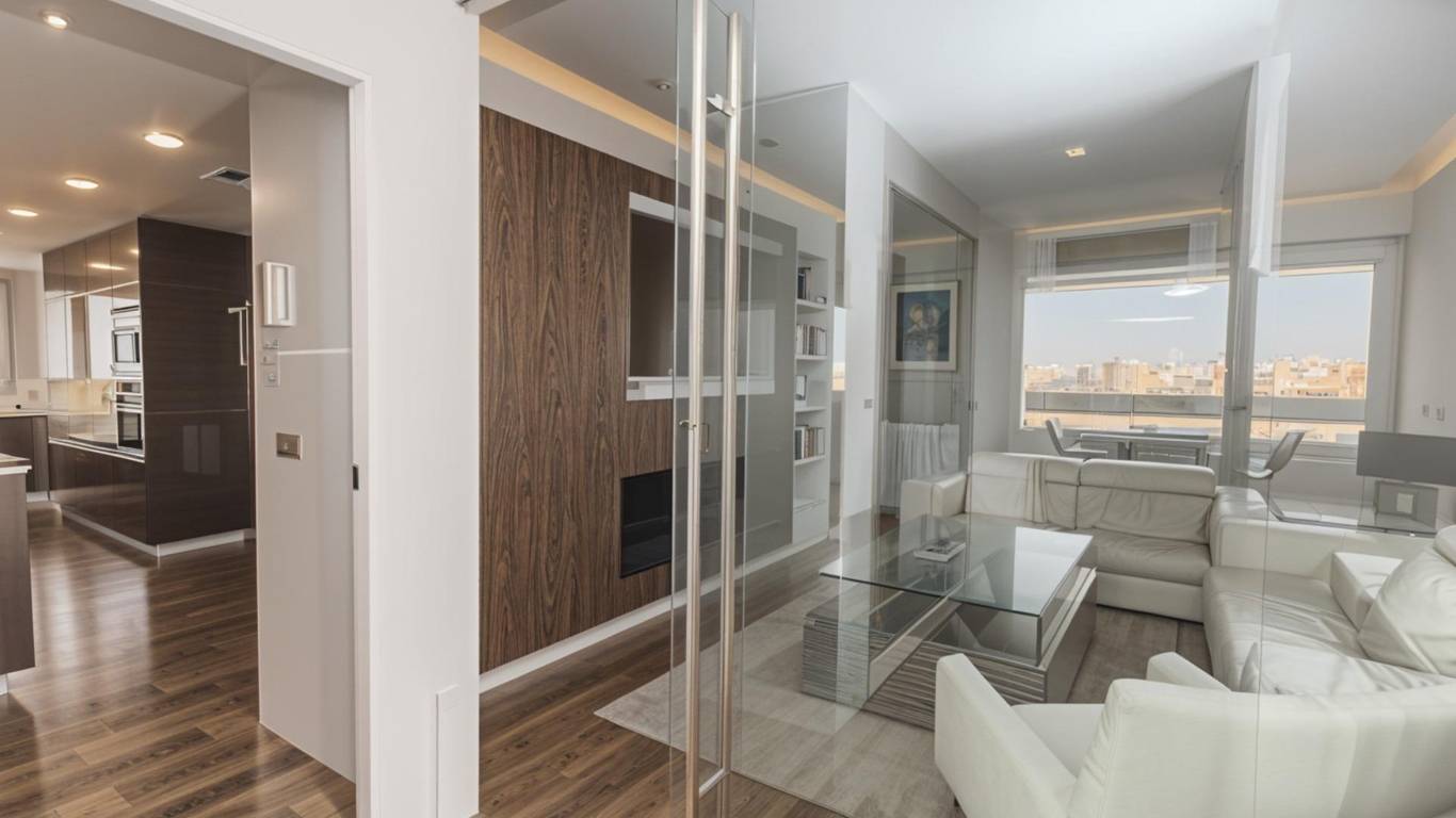 El amplio hall de entrada nos da paso al salón independiente con terraza y comedor con enorme ventanal, se trata de una estancia generosa y elegante, perfecta para diferenciar con claridad la zona de estar y el comedor.