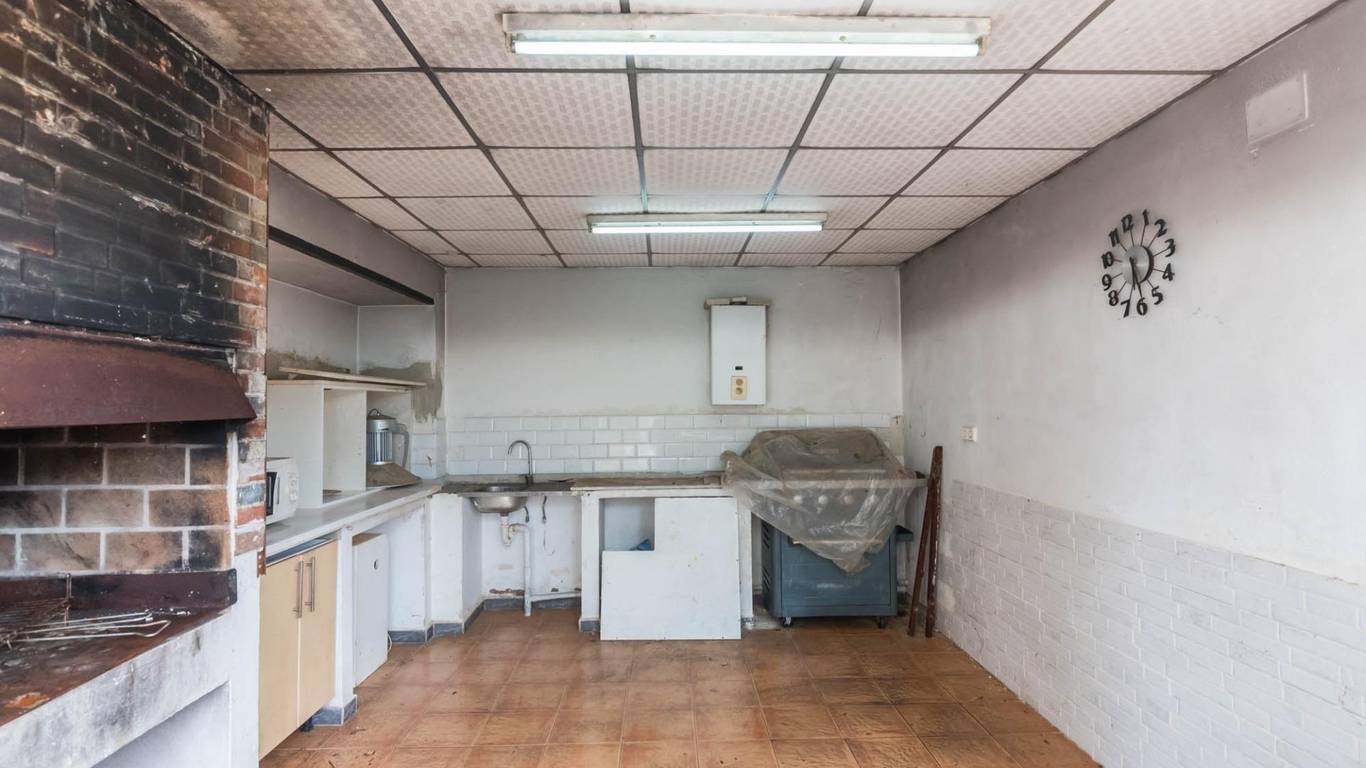 Cocina independiente con zona de lavadero y chimenea.