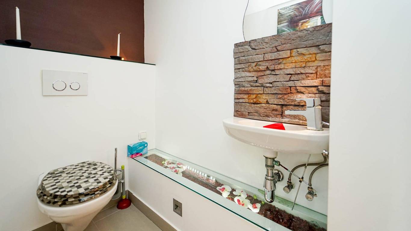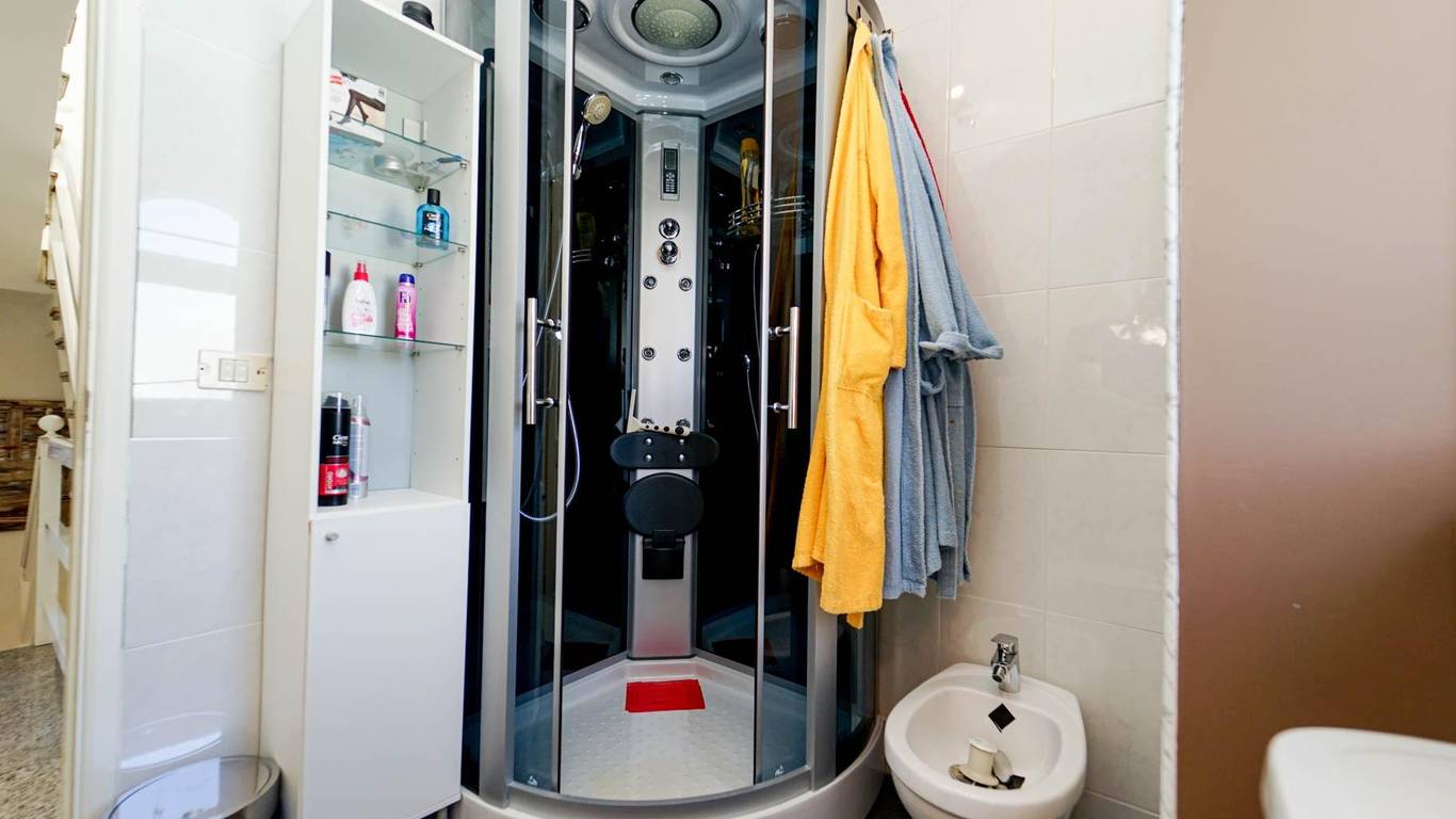 On this floor there is also the entrance area with space for an office, a guest toilet with carefully selected details, and a storage room featuring a skylight with electric opening, providing natural light and additional ventilation. Electric shutters on the windows enhance comfort, security and light control.