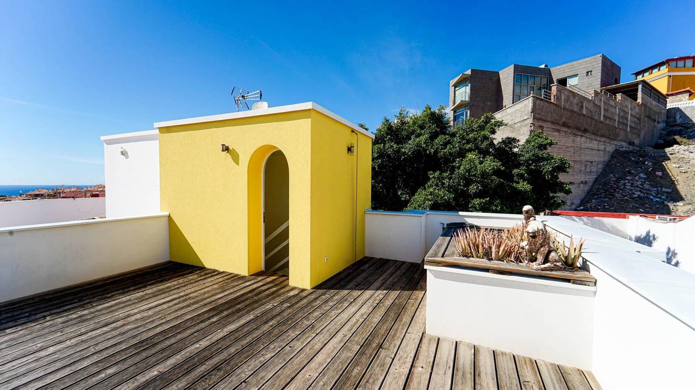 The upper floor provides access to a spectacular rooftop terrace, fully clad with the same exclusive, maintenance-free wood. An ideal space to enjoy the sun, relax or share evenings outdoors with sea and surrounding views.