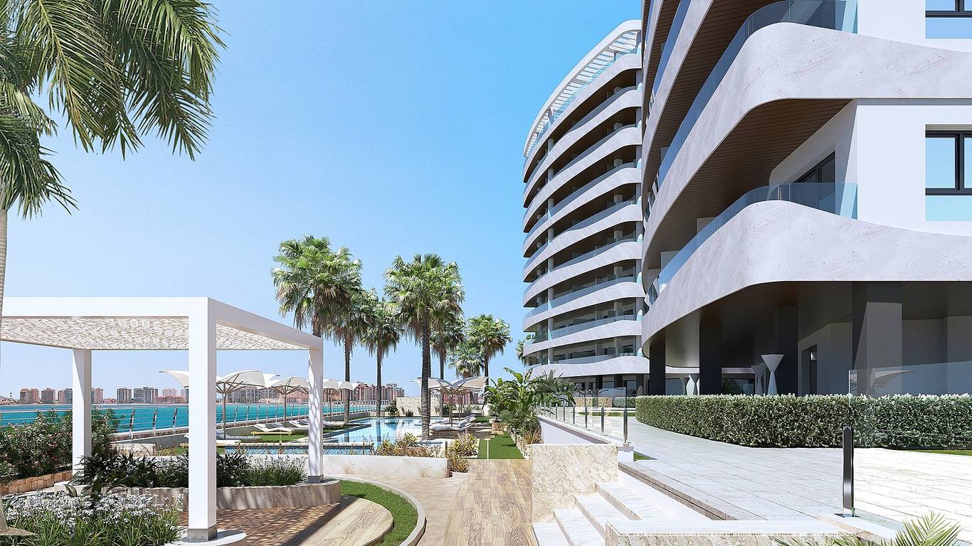 Directly on the beach of La Manga del Mar Menor, Costa Cálida. The complex consists of two towers, each with a spacious private terrace and panoramic views of the Mediterranean Sea. Featuring high-end finishes and amenities such as a swimming pool, gym, and luxurious spa. The location offers direct access to Blue Flag beaches and a wide range of local amenities including restaurants, shops and beach clubs.