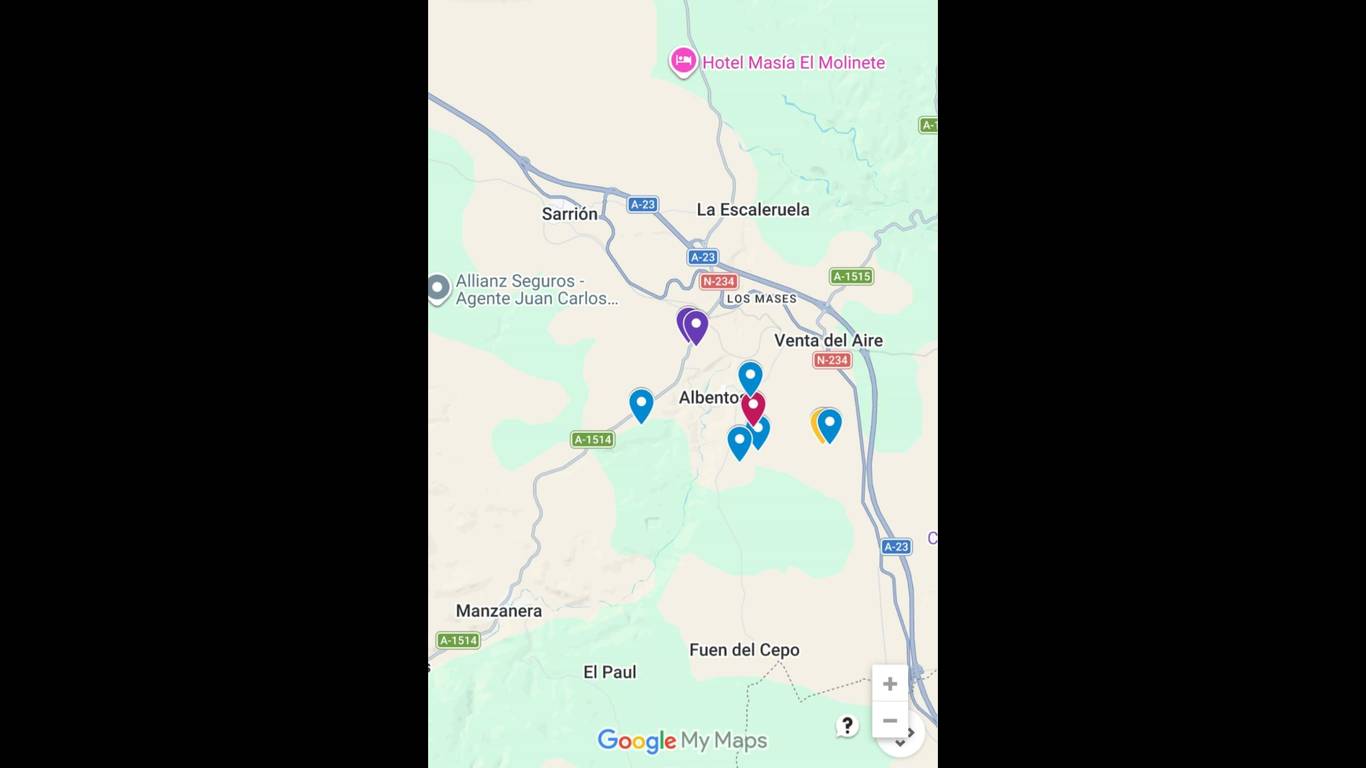 Banks, ATMs: Ibercaja - 5580m; Caja Rural - 5590m Supermarkets: Supermercado Ecoaliment - 5680m; Adidas outlet - 17680m Shops, pharmacies: Secadero Juan Gargallo - 2740m; Càrnicas Corella S.L. - 2790m; Farmacia - 5480m; Electrodomesticos Cercós - 5530m; Panadería de Abajo - 5580m; Carnicería Torres - 5680m Cafes, restaurants: Casa Amparín - 1750m; Buenos Aires - 2670m; El Merendero - 2750m; Bar Restaurante La Fragua - 5470m; Pub Infinity - 5580m; Bar González - 5580m Bus stops: Venta del Aire / Apeadero de Rubielos - 2650m Education: Colegio de Educación Infantil y Primaria Sarrión - 5340m; Colegio Rural Agrupado Javalambre - 7040m; Escuela de Olba - 12570m; Escuela - 18330m; Colegio Público Pórtico de Aragón - 19060m