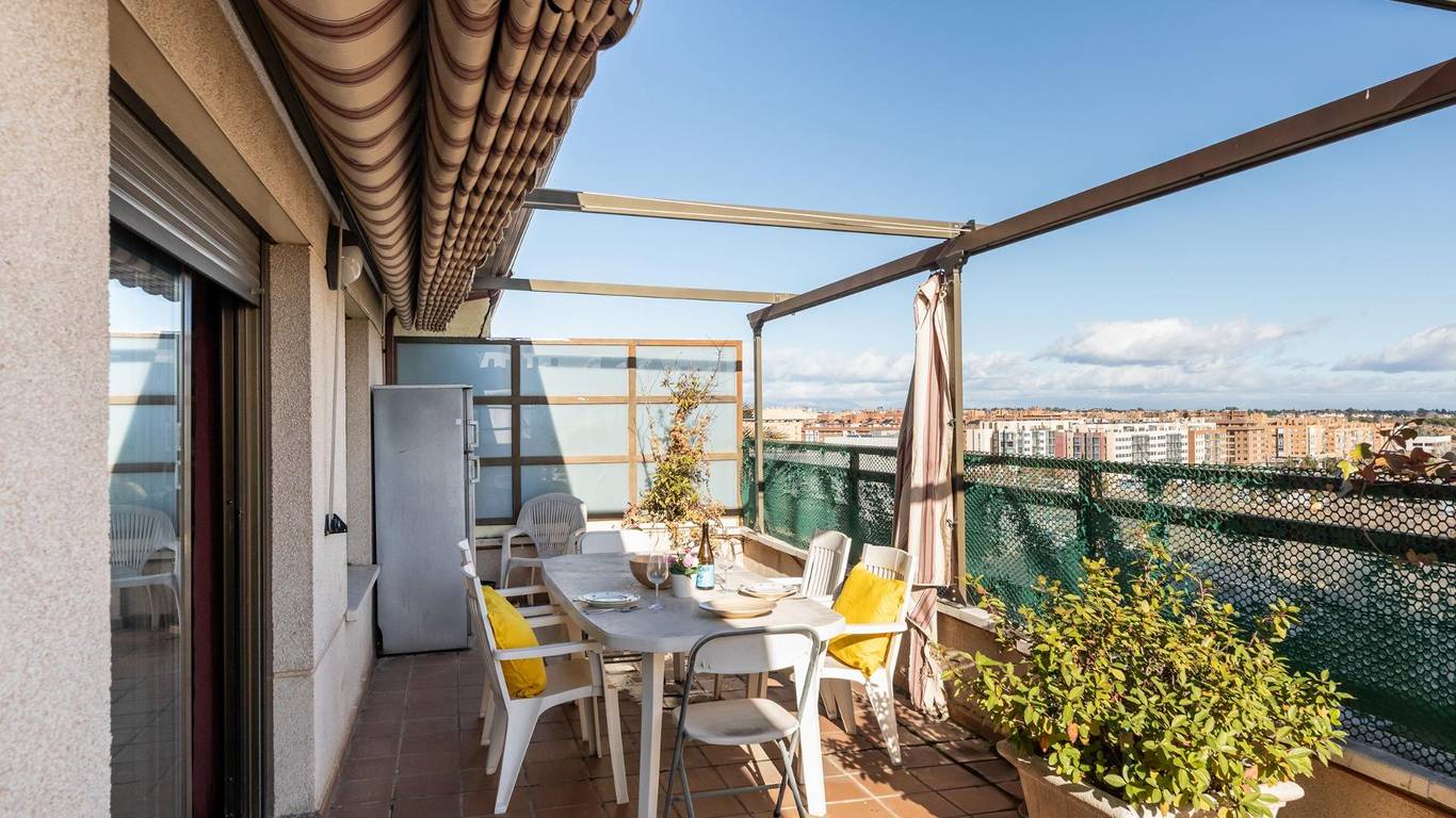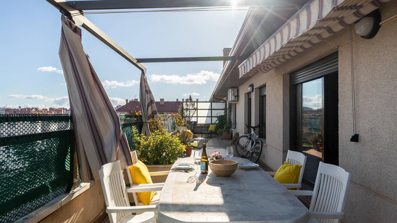 Uno de los activos principales de esta vivienda son sus dos fabulosas terrazas, una orientada al este, con acceso desde el salón y con unas vistas totalmente despejadas donde la mirada llega hasta la sierra y otra al oeste, con acceso desde la cocina y el dormitorio principal y que ofrece vistas a la urbanización.