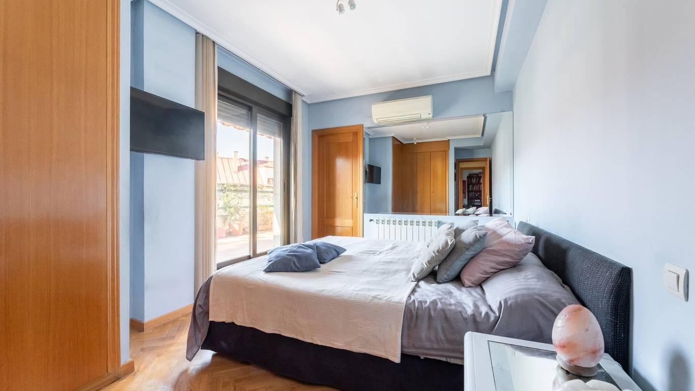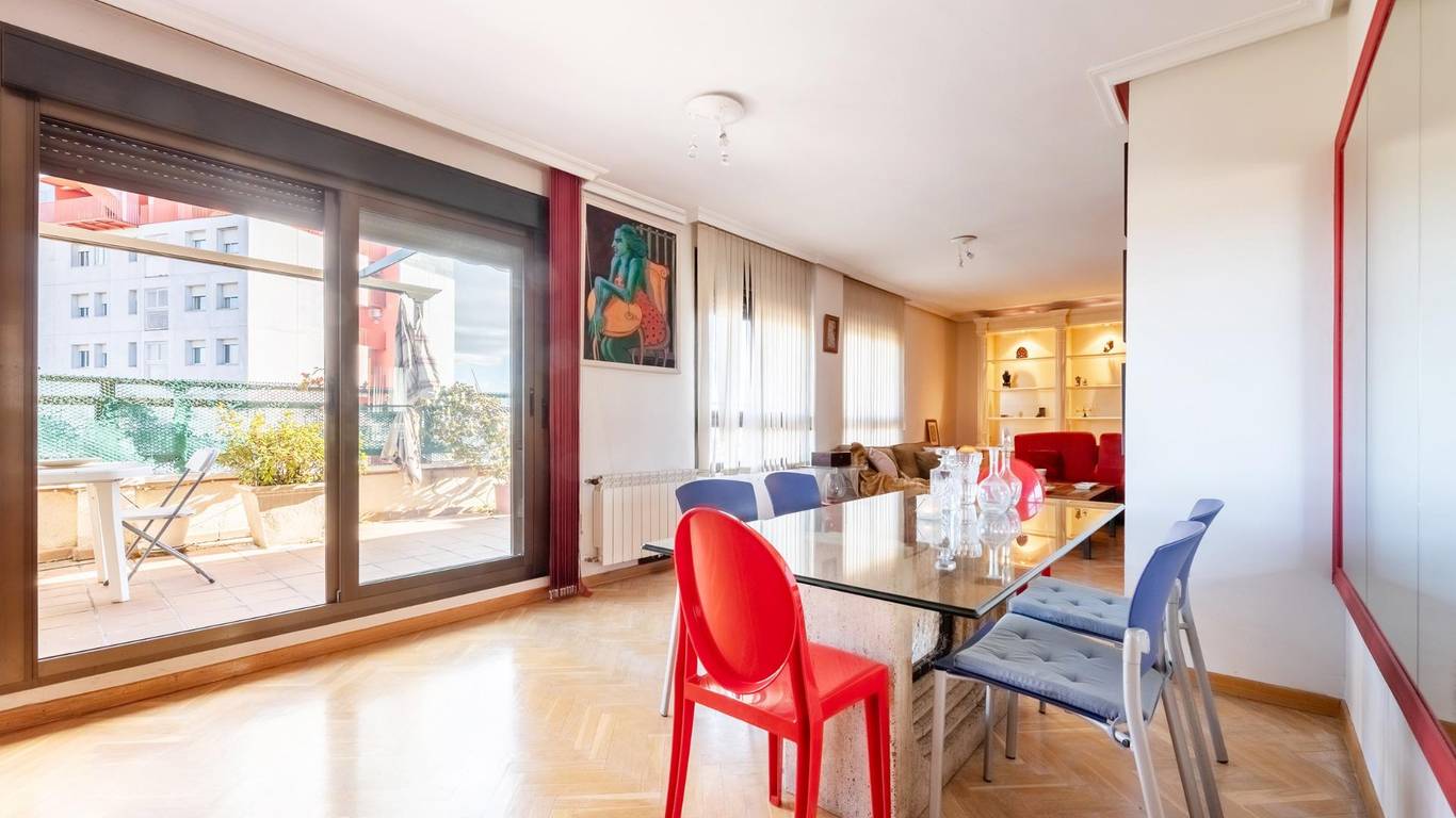MADRID, SANCHINARRO.- Espectacular ático en la calle Princesa de Éboli de Sanchinarro con una distribución muy cómoda y especial donde destaca un gran salón comedor con salida a una preciosa terraza de 45 metros de superficie, una cocina con espacio para montar un pequeño office con salida a otra gran terraza, tres dormitorios (uno de ellos en suite) y dos cuartos de baño completos.