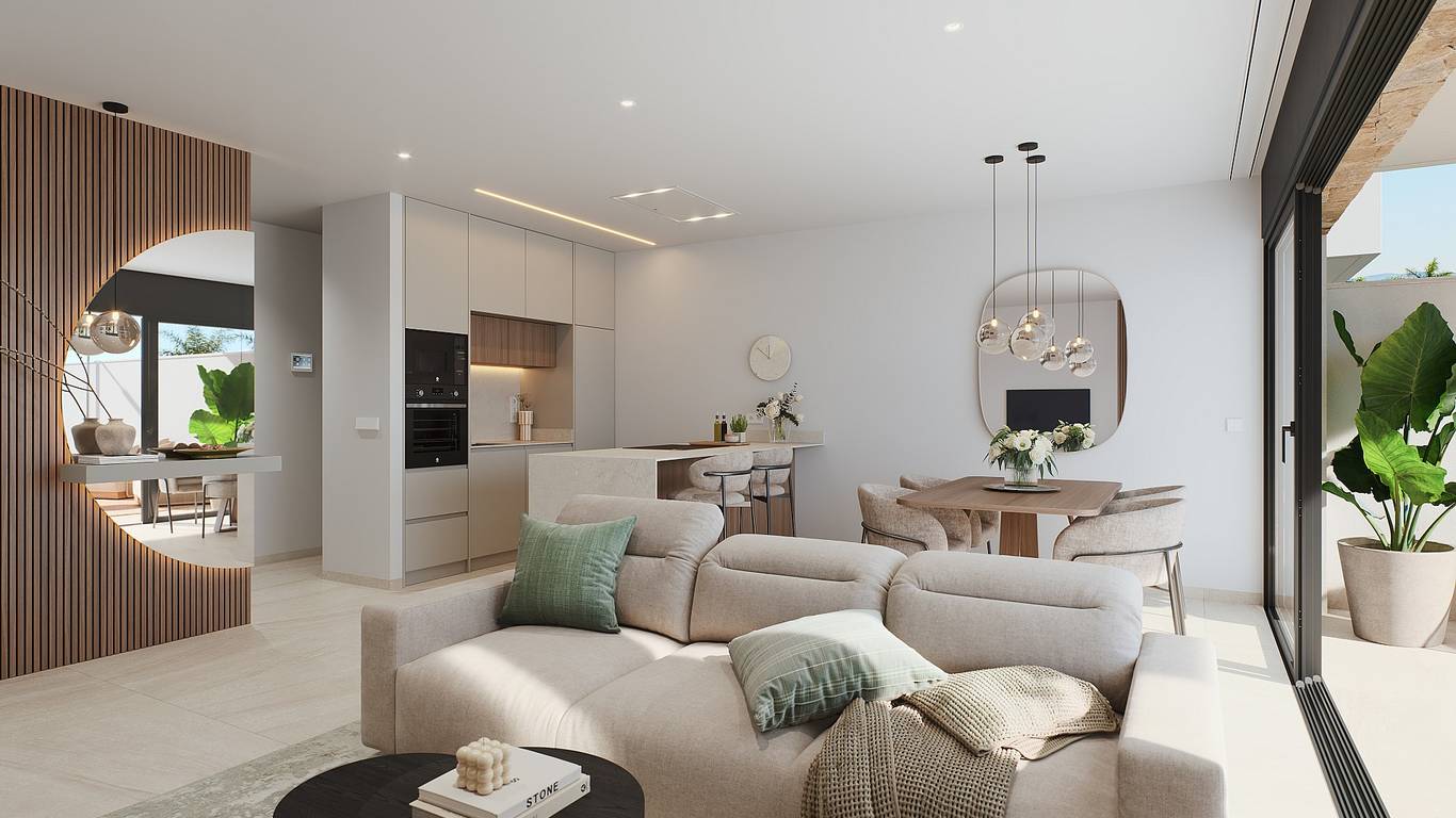 The villas are located in the heart of San Pedro del Pinatar, a popular coastal town on the Mar Menor and the Mediterranean Sea. The location offers easy access to all amenities such as supermarkets, restaurants, parks and sports facilities, as well as the nearby Dos Mares shopping center. You will find beautiful beaches and nature reserves just a few minutes' drive away. For golf enthusiasts, courses such as Roda Golf, Lo Romero and La Serena Golf are nearby.