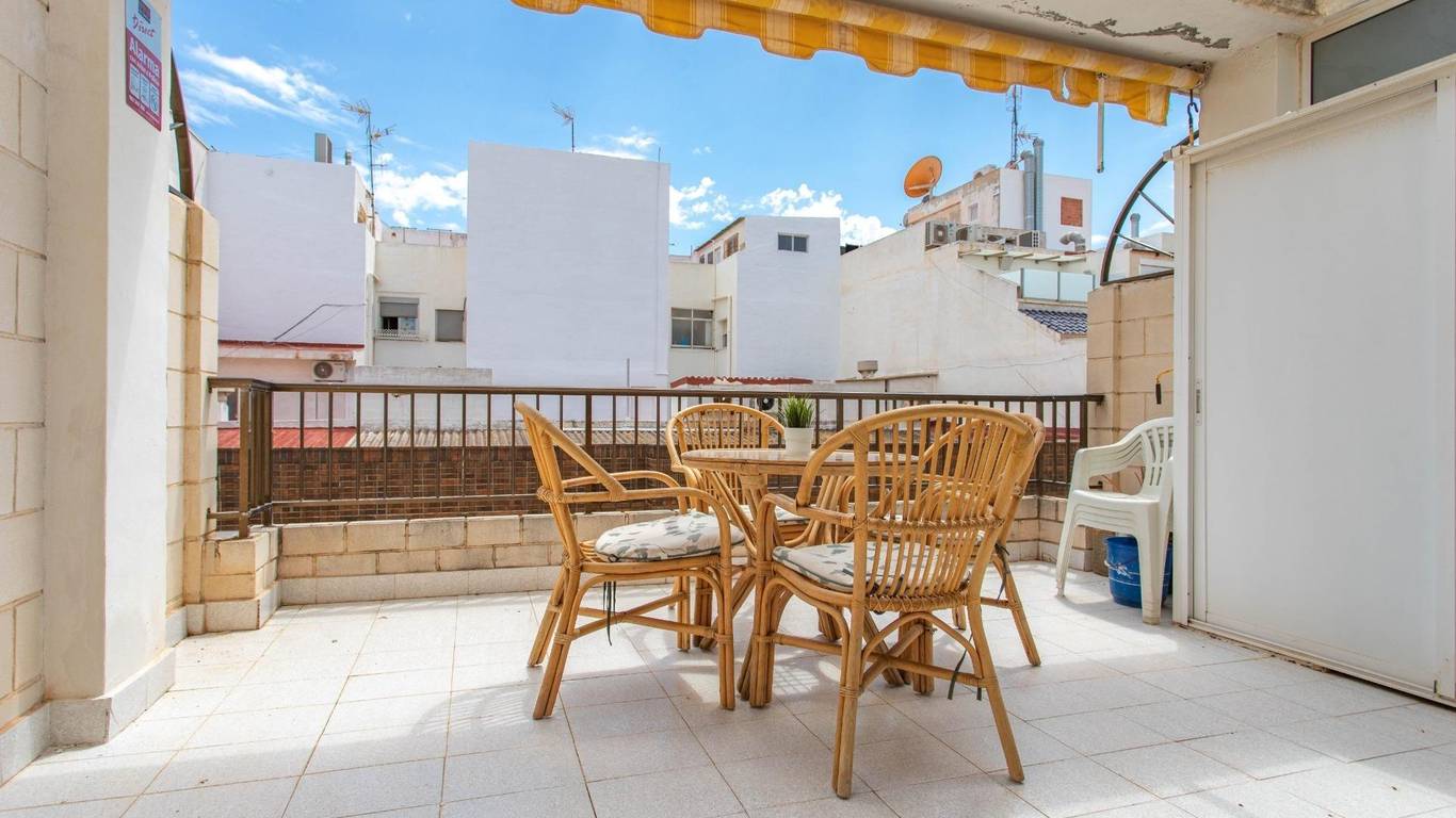 Luminoso ático con amplia terraza junto al mar en Playa del Cura TorreviejaTe presentamos una auténtica joya inmobiliaria en una de las zonas más valoradas y emblemáticas de Torrevieja: Playa del Cura. Este ático, situado a escasos 50 metros del mar, ofrece una oportunidad única para vivir o invertir en la costa alicantina, disfrutando del sol, la brisa marina y la comodidad de una ubicación inmejorable.Con una superficie construida de 71 m y una magnífica terraza de 17 m orientada al sur, esta vivienda destaca por su excelente luminosidad, su distribución funcional y su enorme potencial. Su orientación garantiza sol durante gran parte del día, lo que la convierte en un espacio perfecto tanto en verano como en invierno.El interior de la vivienda se distribuye en dos dormitorios de buen tamaño, ambos con armarios empotrados, un baño completo, una cocina independiente totalmente equipada y un salón acogedor que da acceso directo a la gran terraza. Esta última es, sin duda, uno de los puntos fuertes del inmueble: un espacio perfecto para desayunar al aire libre, leer al sol, compartir veladas con amigos o simplemente relajarse contemplando el entorno y disfrutando de las vistas parciales al mar.La vivienda conserva su estado original, lo que permite reformarla y adaptarla a tus gustos personales, haciendo de ella un hogar completamente personalizado o un atractivo proyecto de inversión. Además, se entrega amueblada, lo que facilita su uso inmediato tanto para residencia habitual como para alquiler vacacional.Entre los extras incluidos en el precio destacan el aire acondicionado con bomba frío/calor, sistema de alarma, trastero privado, ascensor en el edificio, acceso a solárium comunitario y balcón. Todo pensado para ofrecer el mayor confort en el día a día.Ubicada en una zona muy demandada por residentes y turistas, la propiedad está rodeada de todos los servicios necesarios: supermercados, farmacias, transporte público, cafeterías, comercios locales, zonas verdes y, por supuesto, la playa a tan solo unos pasos. También se encuentra muy cerca del Paseo Marítimo y del centro urbano, donde se concentra la mayor actividad cultural, comercial y gastronómica de Torrevieja.Este ático representa una opción ideal para quienes desean vivir junto al mar sin renunciar a la cercanía de todos los servicios urbanos. También es una excelente oportunidad de inversión por su alto potencial de rentabilidad en el mercado de alquiler turístico, gracias a su ubicación estratégica y su cercanía a una de las playas más populares de la ciudad.Con un precio competitivo de 159.990 , esta propiedad lo tiene todo: ubicación, espacio exterior, orientación sur, posibilidades de reforma y una conexión privilegiada con el estilo de vida mediterráneo.No dejes pasar esta oportunidad de adquirir un ático con encanto en el corazón de la Costa Blanca. Ponte en contacto con nosotros y agenda tu visita. Tu nuevo hogar junto al mar te está esperando