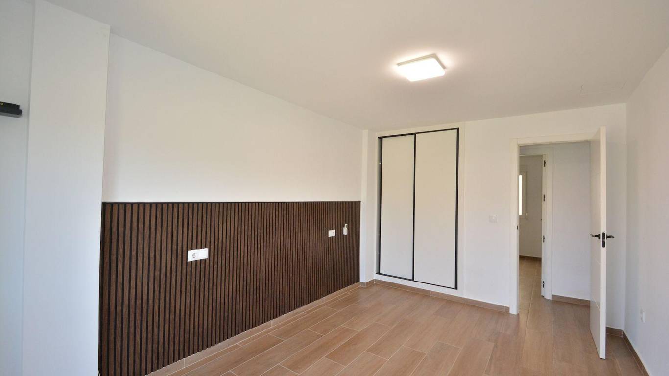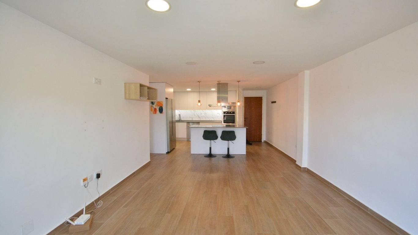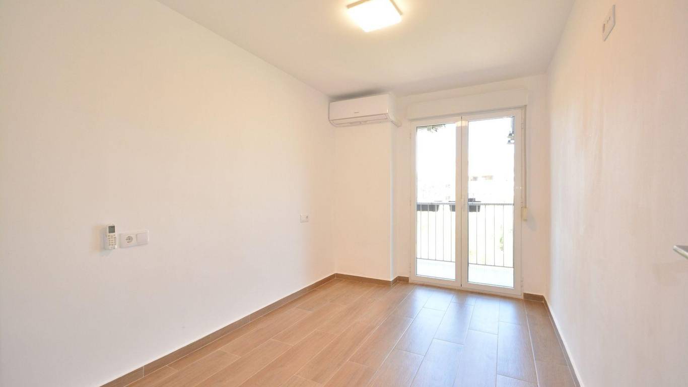 The apartment features smooth walls, new flooring, new doors, and new windows in all rooms. Air conditioning with split units is installed in all rooms except the smaller bedroom. There is also a balcony with open views, ideal for enjoying the surroundings.