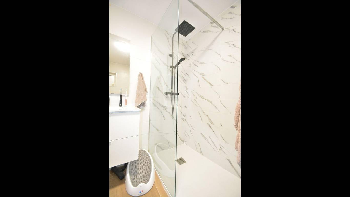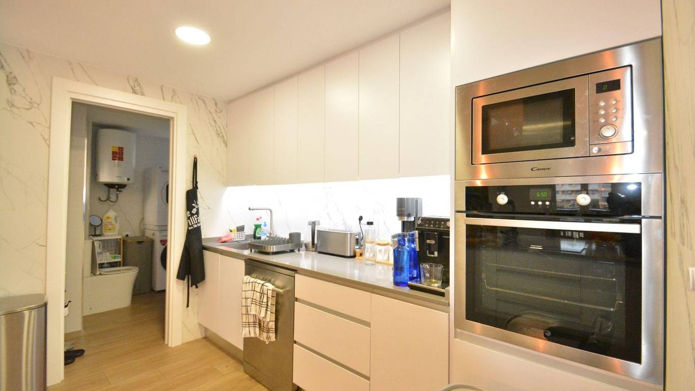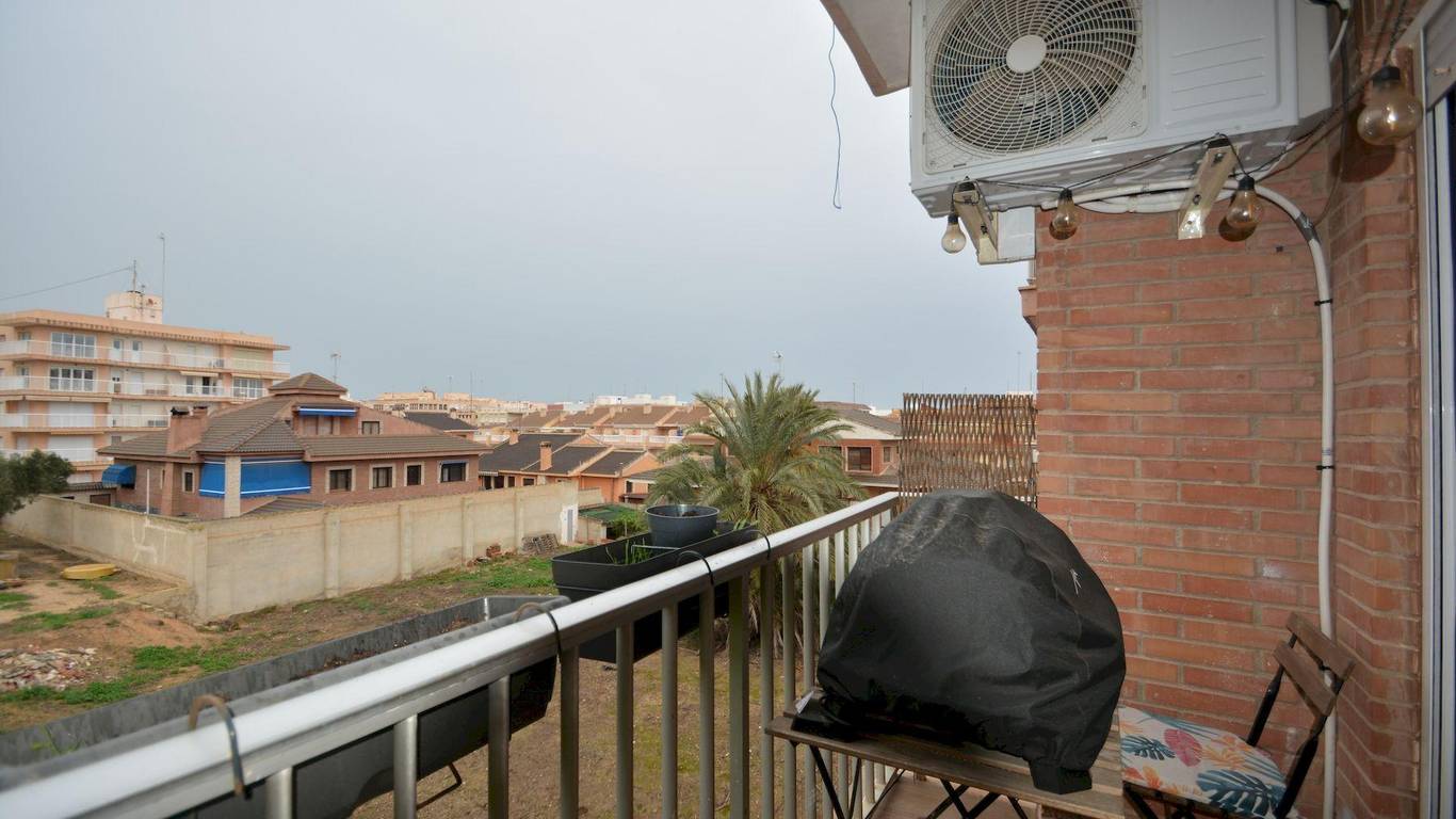 This fully renovated apartment is located in Guardamar del Segura, just 200 meters from the central beach, in a quiet street with all services within walking distance. Guardamar is a well-known coastal town offering long sandy beaches, parks, restaurants, shops, and a relaxed Mediterranean lifestyle, with easy access to Alicante city and the airport by car.The apartment is on the first floor of a building without a lift and offers 93 m of constructed area and 81 m of usable space. It is north facing and has three bedrooms and two bathrooms, both with windows that provide natural ventilation. Two of the bedrooms are spacious and face the street and a nearby park, while the smaller bedroom overlooks the internal patio of the building. Built-in wardrobes are included in two bedrooms.The open-plan kitchen is fully equipped and connects well with the living area, creating a comfortable and practical space. The apartment features smooth walls, new flooring, new doors, and new windows in all rooms. Air conditioning with split units is installed in all rooms except the smaller bedroom. There is also a balcony with open views, ideal for enjoying the surroundings.The property is sold with a fully equipped kitchen. Beds, televisions, speakers, and the washing machine are not included in the price. A private parking place is included, adding extra convenience.This apartment is an excellent option for permanent living or as a holiday home, thanks to its quality renovation, excellent location, and proximity to the beach. Taxes and administrative costs are not included in the price. Please contact us to arrange a viewing.