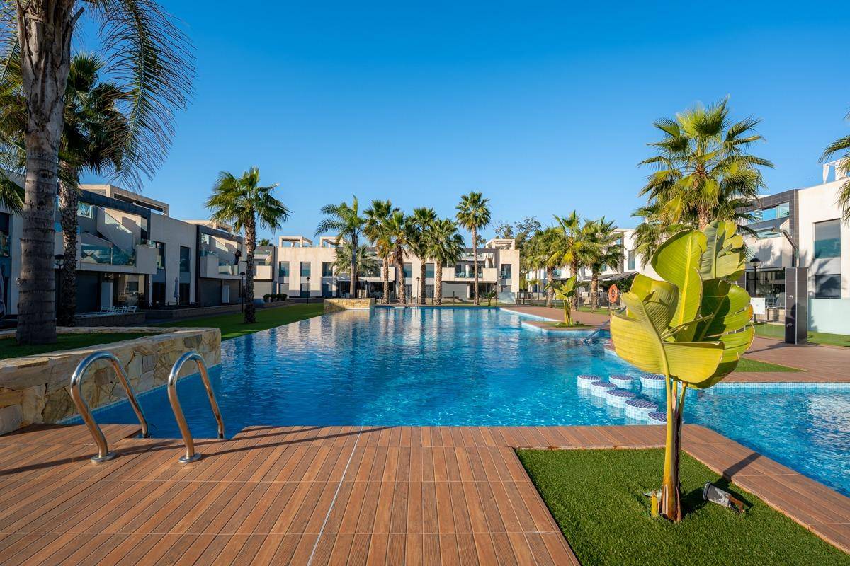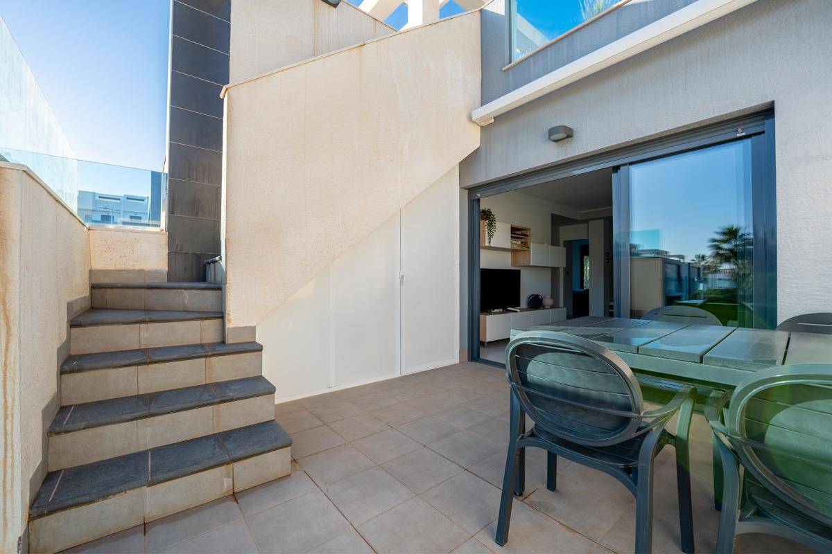 Elegante ático con terraza privada en la azotea y vistas únicas a los hermosos lagos salados.Este exclusivo ático en El Raso, construido en 2019, está diseñado para aquellos que buscan algo realmente especial.Ofrece 99 m de espacio habitable cuidadosamente diseñado, con una cocina y una sala de estar de planta abierta, tres amplios dormitorios, incluido un dormitorio principal con baño en suite, y un elegante baño de invitados.Todo es moderno, está bien cuidado y resulta acogedor.Desde la soleada terraza con toldo eléctrico se accede directamente a lo más destacado de la propiedad: una terraza privada en la azotea diseñada para aquellos que disfrutan de la buena vida.Con una pérgola, una cocina al aire libre y mucho espacio para muebles de salón, es el lugar perfecto para reunir a la familia y los amigos durante los largos días de verano o las acogedoras veladas bajo las estrellas.La propiedad también incluye una plaza de aparcamiento privada en el garaje subterráneo y un amplio trastero de aproximadamente 12 m, una valiosa característica adicional.Las zonas comunes se encuentran entre las mejores de El Raso.Aquí encontrará una gran piscina, pistas de petanca, minigolf, parque infantil, gimnasio al aire libre y un lujoso spa con sauna, gimnasio cubierto y piscina cubierta.Tanto si desea relajarse, mantenerse activo o simplemente disfrutar del sol, todo lo que necesita está a un paso.La ubicación es ideal: a solo 100-350 metros de restaurantes, bares y un supermercado, y a solo 10 minutos de las hermosas playas de Guardamar.Este ático ofrece una combinación única de un entorno natural pintoresco, instalaciones modernas y proximidad a todo lo que hace que la Costa Blanca sea tan deseable.Este ático no es solo una casa, es un estilo de vida.Una oportunidad única para vivir de forma hermosa y cómoda, con espacios exteriores soleados del más alto nivel.