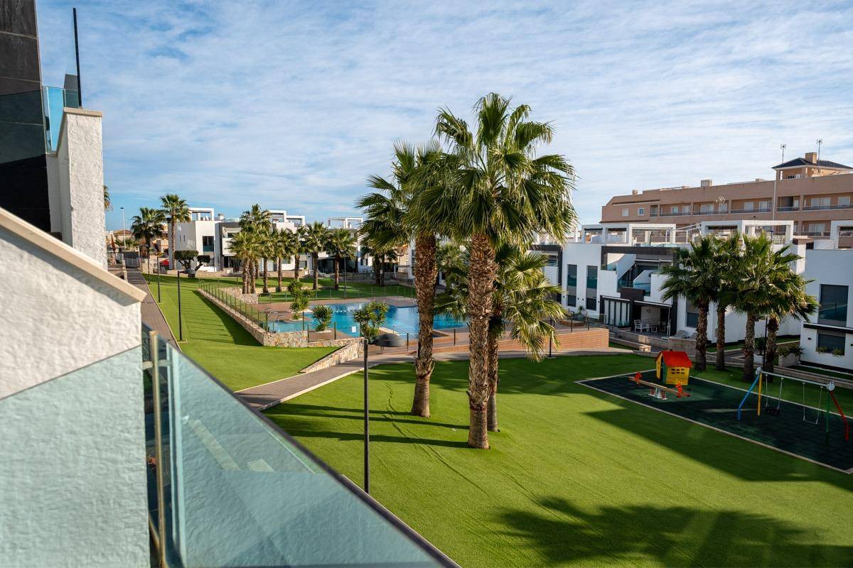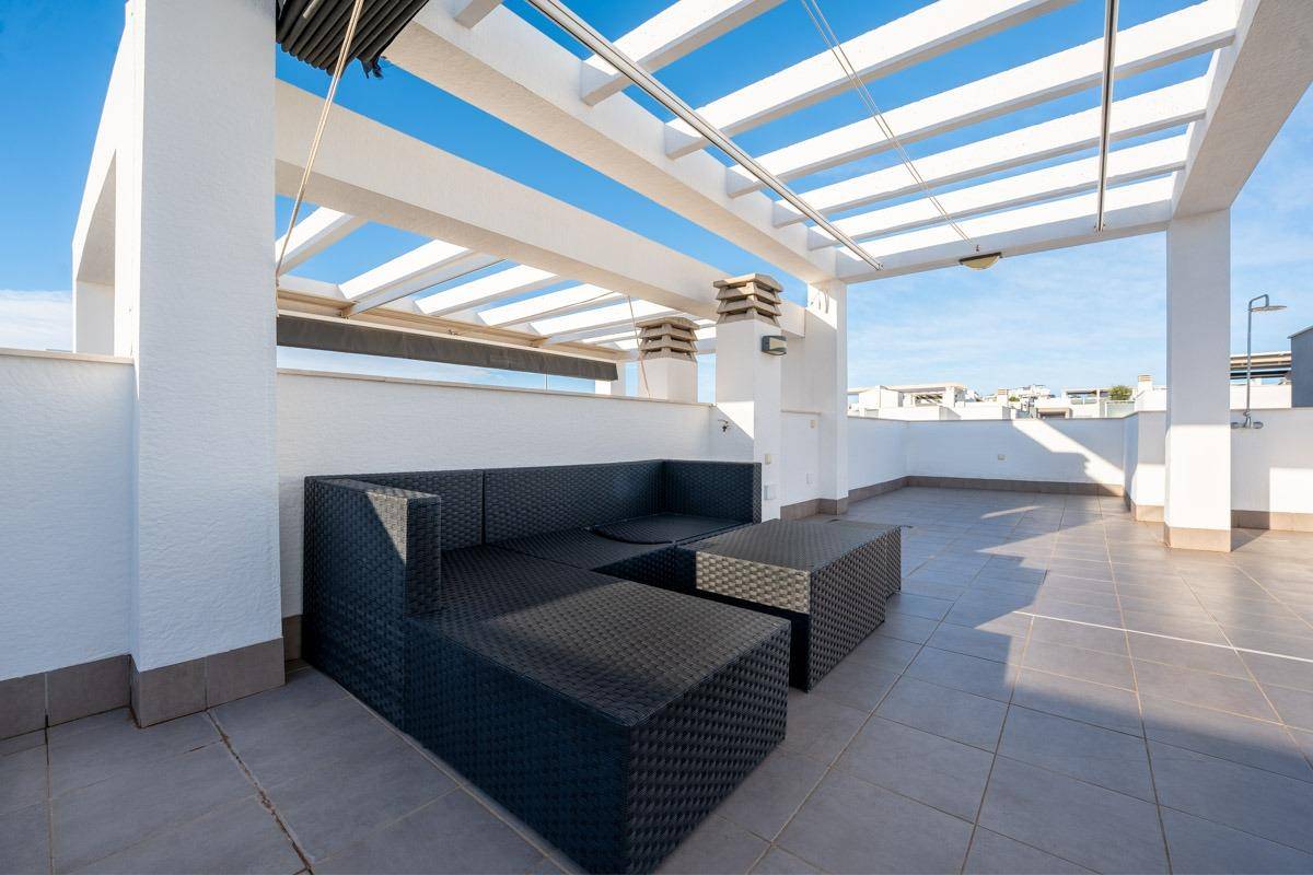 Este elegante ático, construido en 2016, se encuentra en la popular urbanización Oasis Beach en Punta Prima, ofreciendo la combinación perfecta de confort, diseño moderno y una ubicación fantástica en la Costa Blanca.Disfrutará de una comunidad familiar y muy bien cuidada, con amplias zonas verdes, piscina comunitaria y un ambiente tranquilo, ideal como vivienda vacacional, residencia permanente o una inversión rentable con un excelente potencial de alquiler.El apartamento cuenta con dos dormitorios amplios y luminosos con armarios empotrados, así como dos modernos cuartos de baño, uno de ellos en suite.El salón y la cocina de planta abierta crean una sensación de luminosidad y amplitud, y desde el balcón orientado al este se puede disfrutar de las vistas de la piscina y la vegetación circundante.Uno de los aspectos más destacados de la propiedad es la gran terraza privada en la azotea, que ofrece mucho espacio para tomar el sol, comer al aire libre y relajarse bajo el sol español, con vistas a la zona y a partes del mar Mediterráneo.El apartamento también incluye aire acondicionado en todas las estancias y una plaza de aparcamiento subterráneo.Oasis Beach ofrece un entorno de vida seguro y agradable a poca distancia de playas, restaurantes, tiendas y todos los servicios necesarios.A solo 40 minutos del aeropuerto de Alicante, esta ubicación combina la comodidad con la tranquilidad de una zona residencial exclusiva.Se trata de un apartamento moderno, listo para entrar a vivir, con una distribución bien pensada, hermosos espacios al aire libre y una ubicación que lo convierte en una vivienda muy codiciada en la Costa Blanca.