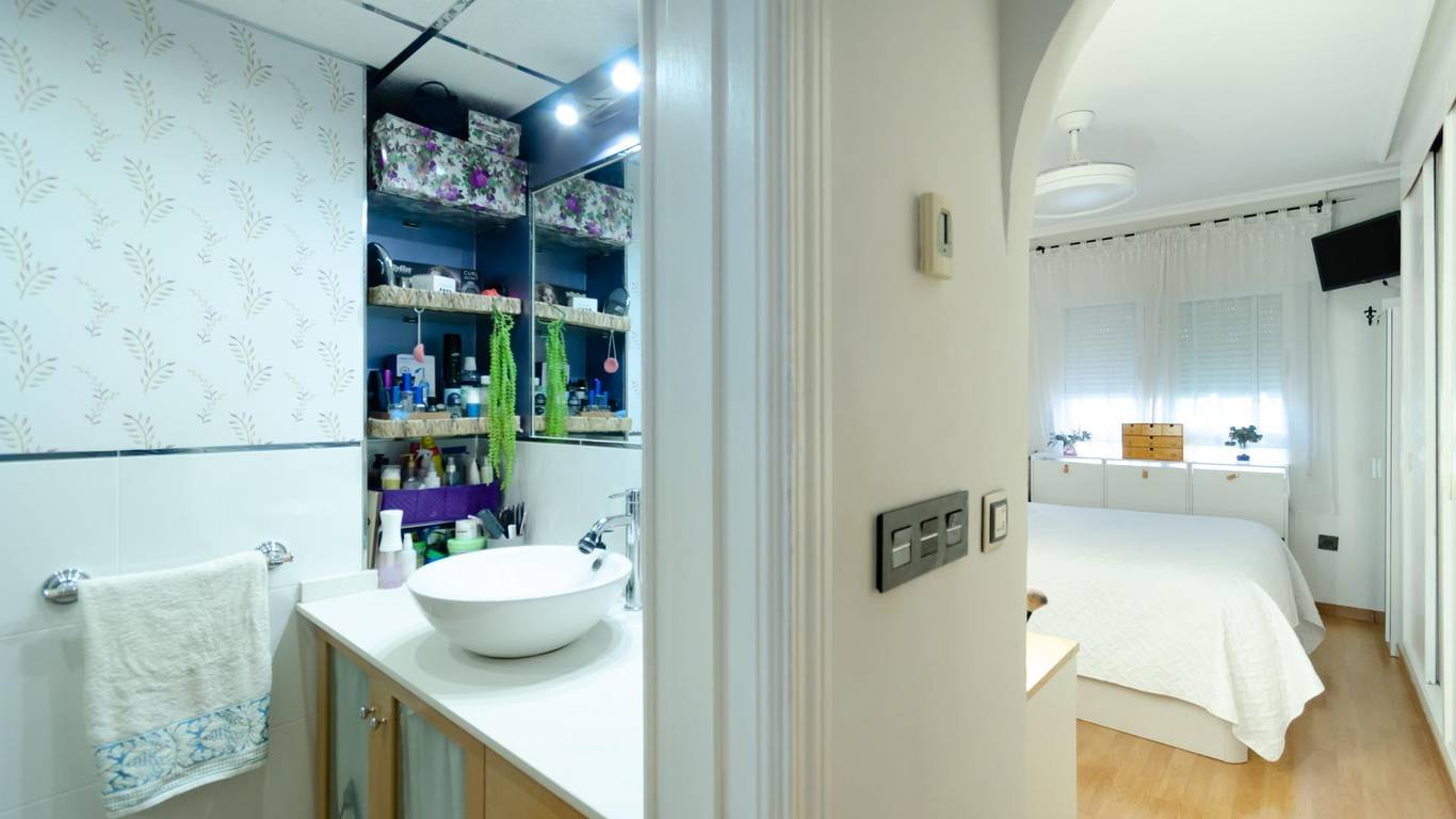 La vivienda presenta dos baños completos bien distribuidos, sumando comodidad a su diseño práctico. Además, destaca por contar con tarima flotante en gran parte del inmueble (excepto cocinas y baños) así como doble acristalamiento que asegura tranquilidad acústica.
