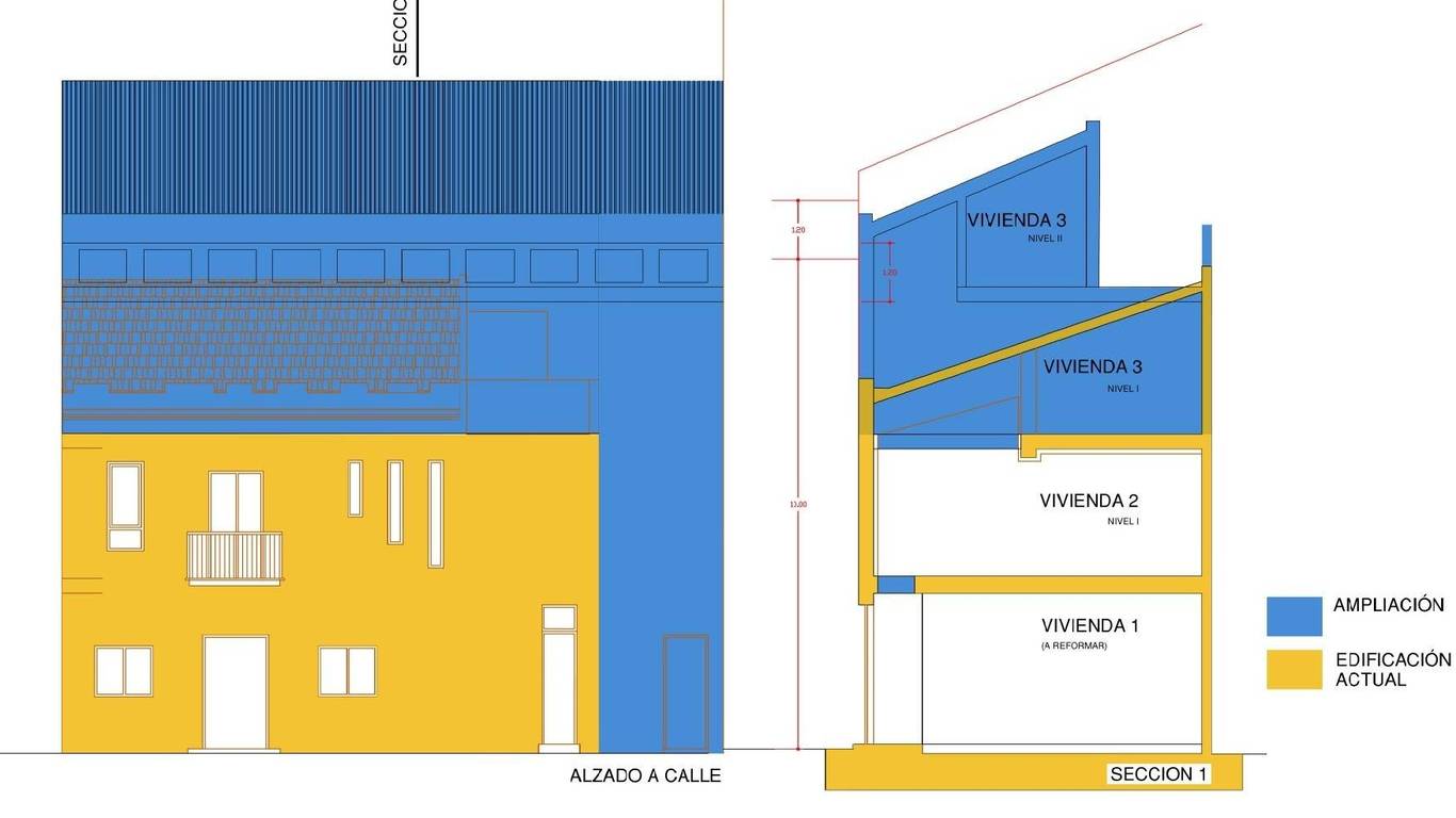 Por otra parte, el edificio no está protegido y cabe la posibilidad de alcanzar MAYOR EDIFICABILIDAD con la ejecución por AMPLIACIÓN de una TERCERA PLANTA y otra planta parcial aprovechando el espacio BAJO CUBIERTA. También es posible colmatar con edificación el patio actual. Con la ampliación puedes conseguir TRES VIVIENDAS independientes.