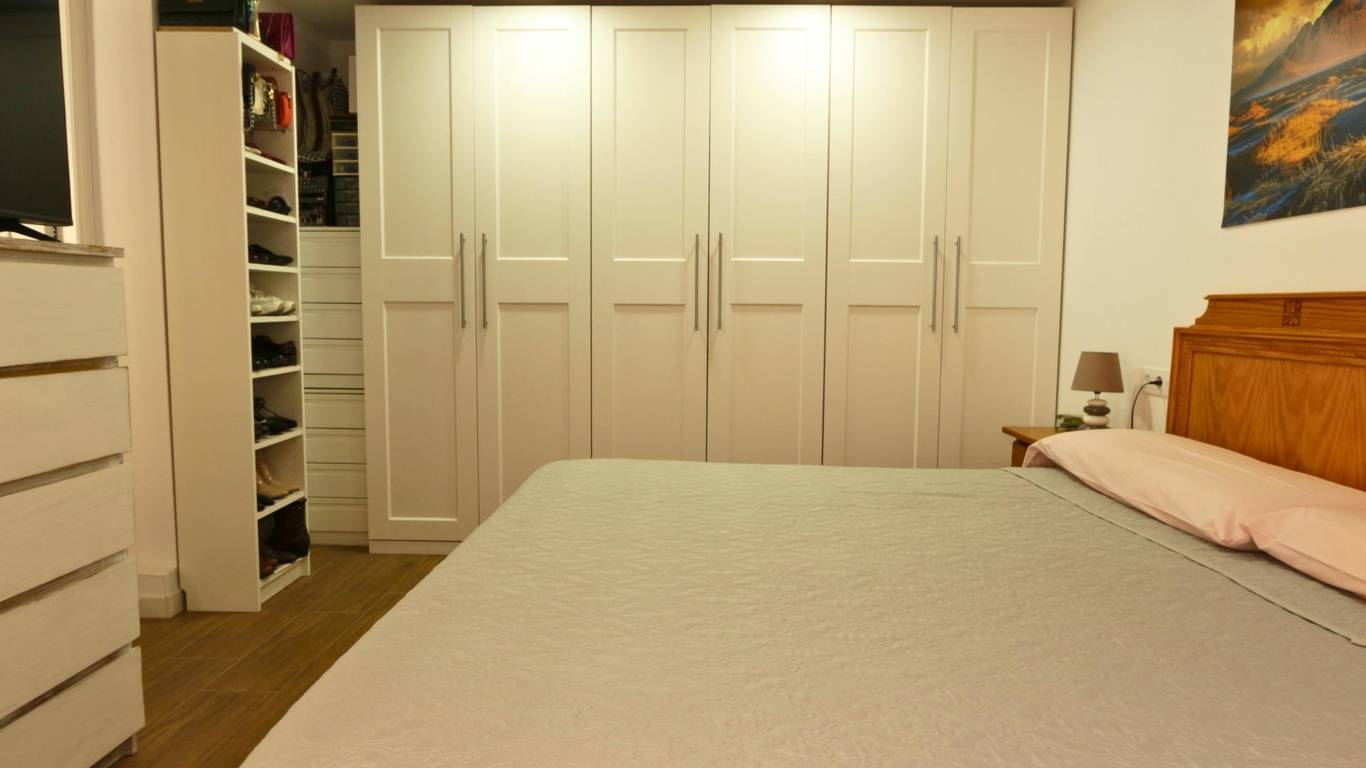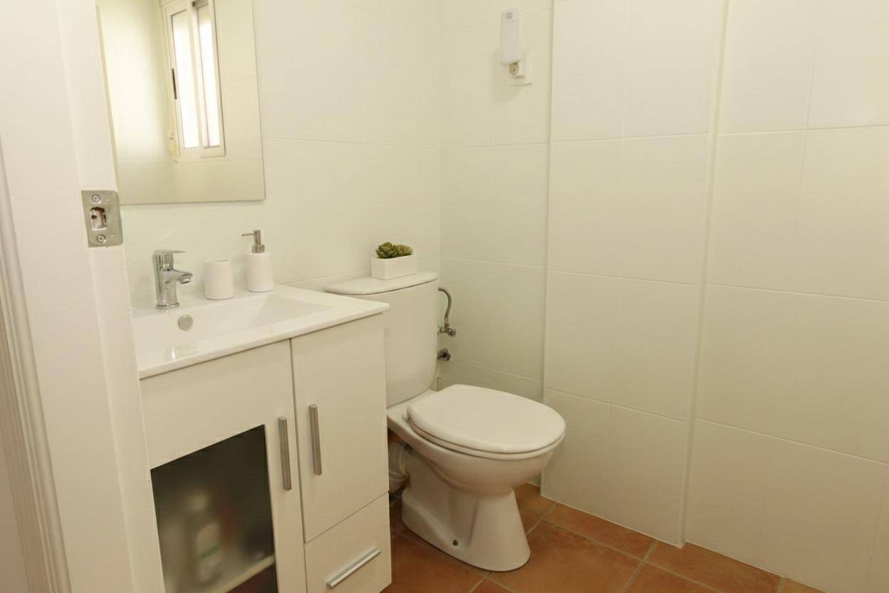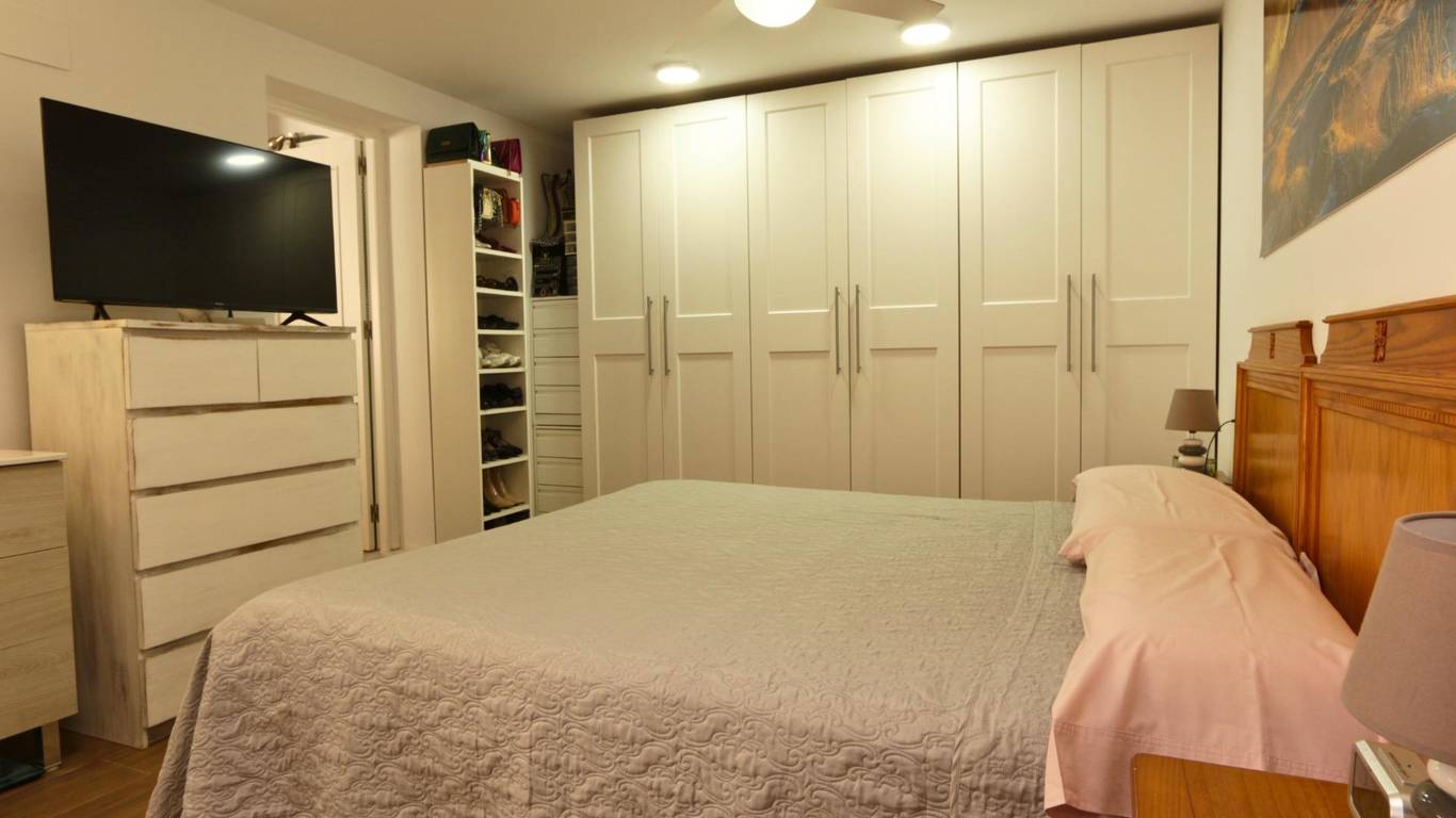 Ground-floor master bedroom (over 20 m): One of the key advantages of this property is the spacious master bedroom on the ground floor, ideal for those who prefer to avoid stairs or prioritise convenience. It features fitted wardrobes, a separate shower, a toilet area with washbasin, WC and bidet, hot and cold air conditioning (split unit) and a ceiling fan offering comfort and privacy.
