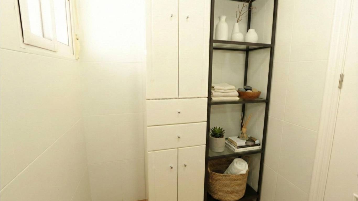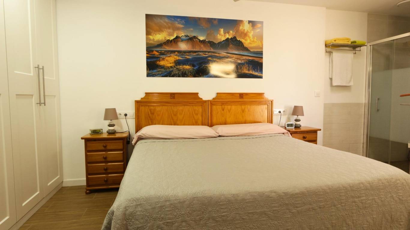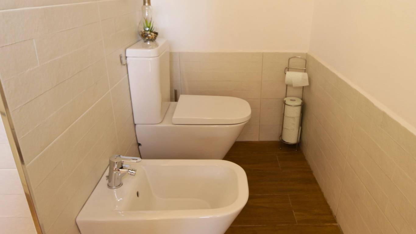 Ground-floor master bedroom (over 20 m): One of the key advantages of this property is the spacious master bedroom on the ground floor, ideal for those who prefer to avoid stairs or prioritise convenience. It features fitted wardrobes, a separate shower, a toilet area with washbasin, WC and bidet, hot and cold air conditioning (split unit) and a ceiling fan offering comfort and privacy.