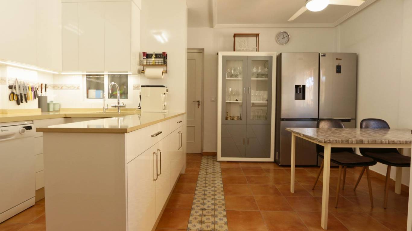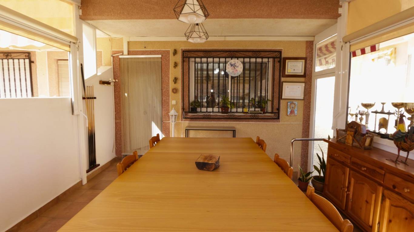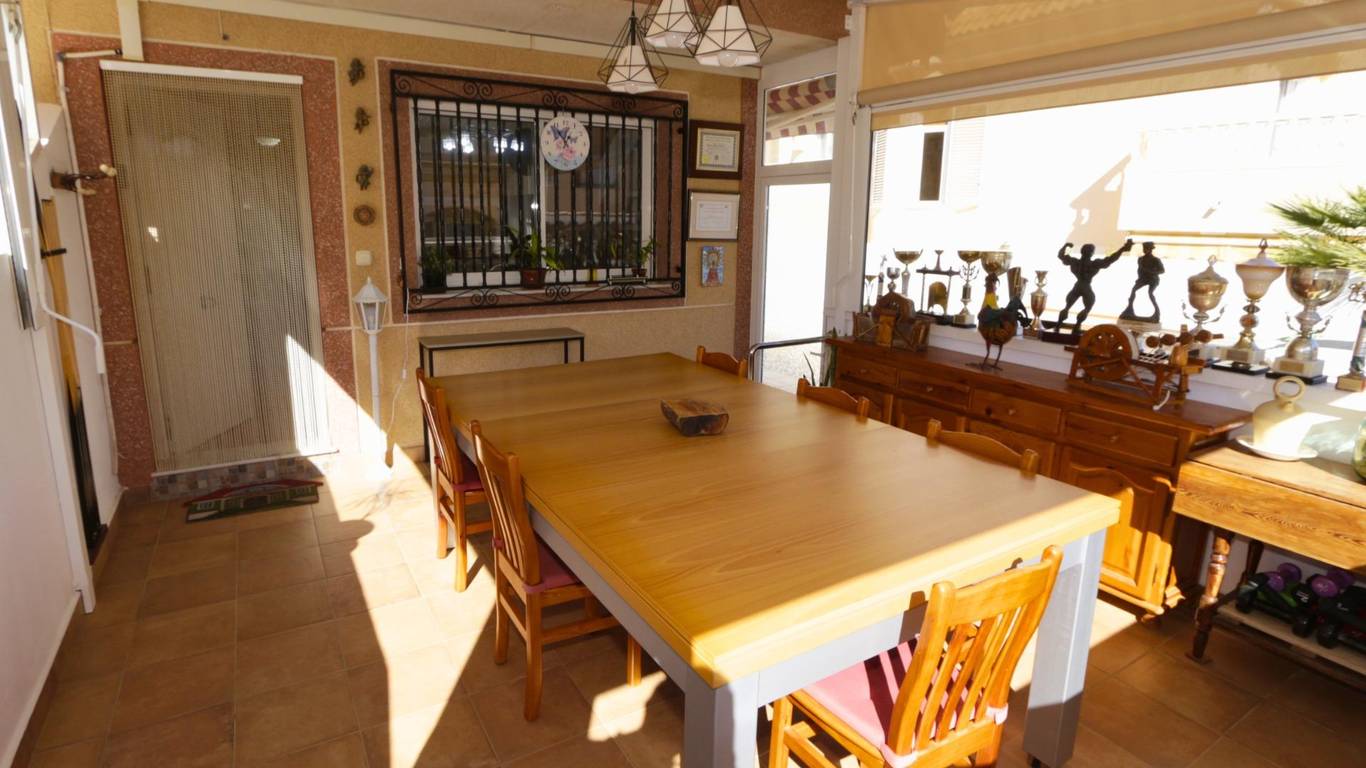 Opposite the kitchen is a practical dining area, ideal for everyday meals in a comfortable and family-friendly setting.