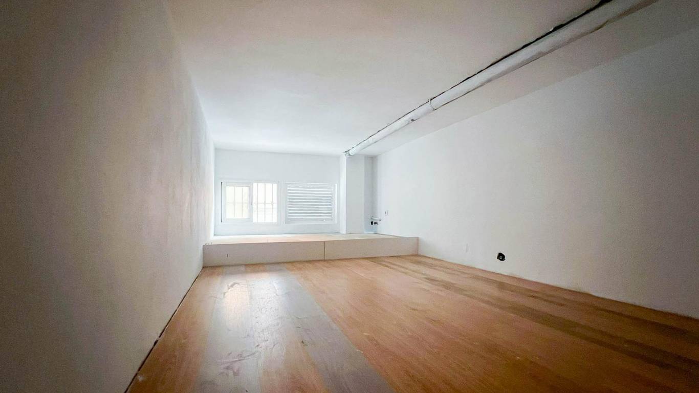 The next room is a huge living room, with many possibilities for decoration, including conversion into a third bedroom or study area, or adaptation to the client's needs. The kitchen is open plan, with a bar that extends directly into the living room. It is fully equipped, but also has many possibilities for improvement.