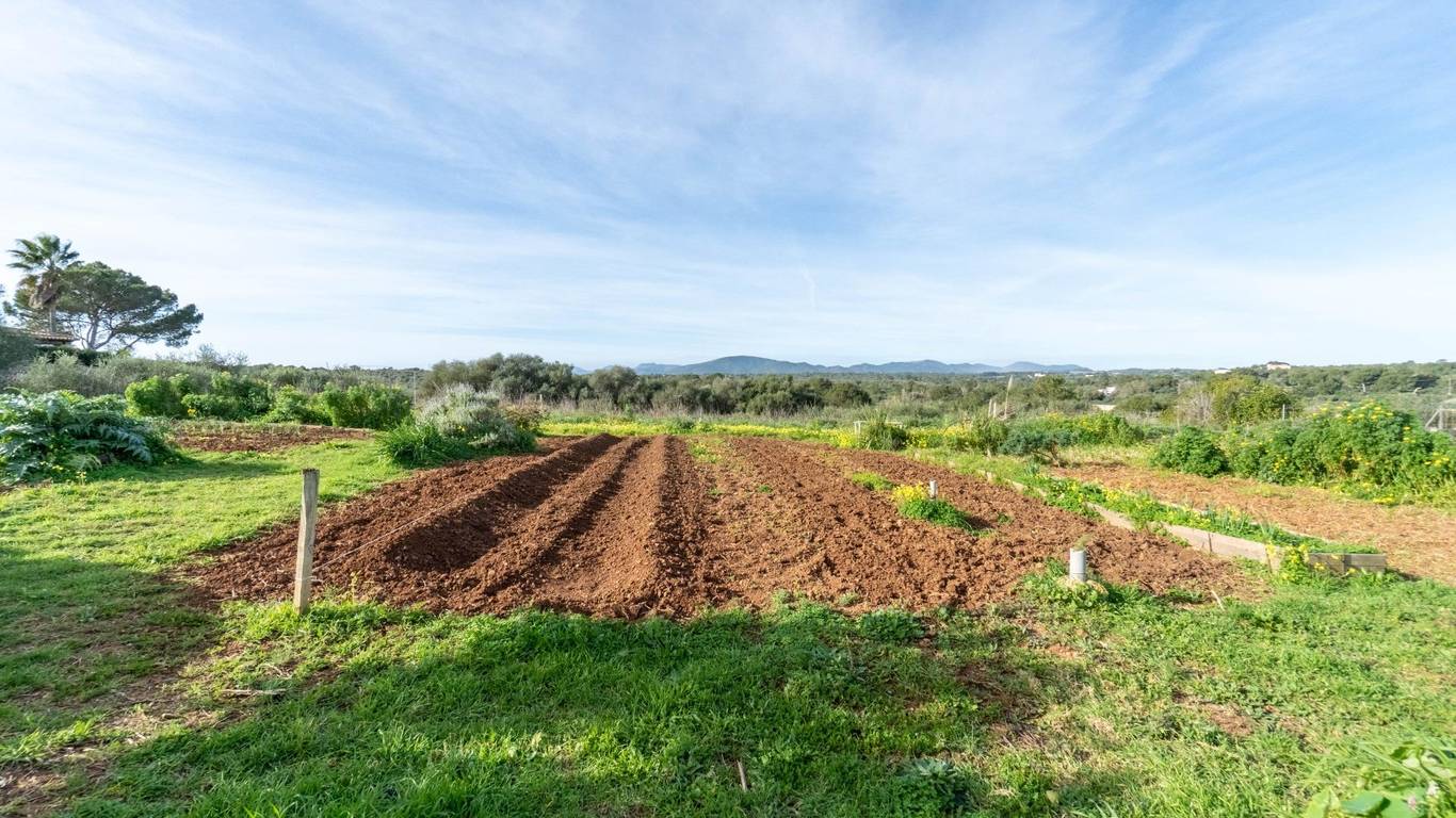 The property sits on a 14,219 m plot, fully fenced with traditional dry-stone walls and perimeter wire fencing. It features a garden, a water safreig (water reservoir), a storage shed for agricultural tools, an animal shelter and a spacious outdoor terrace. The finca borders protected land, ensuring privacy and preventing future developments nearby.