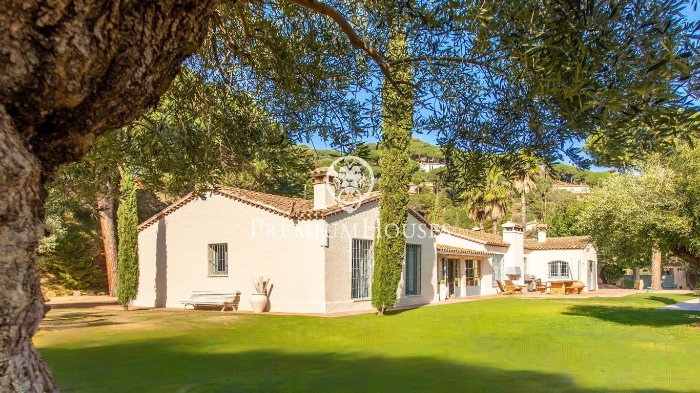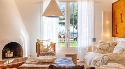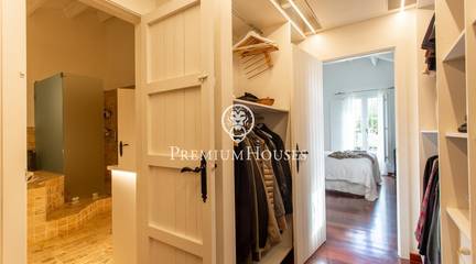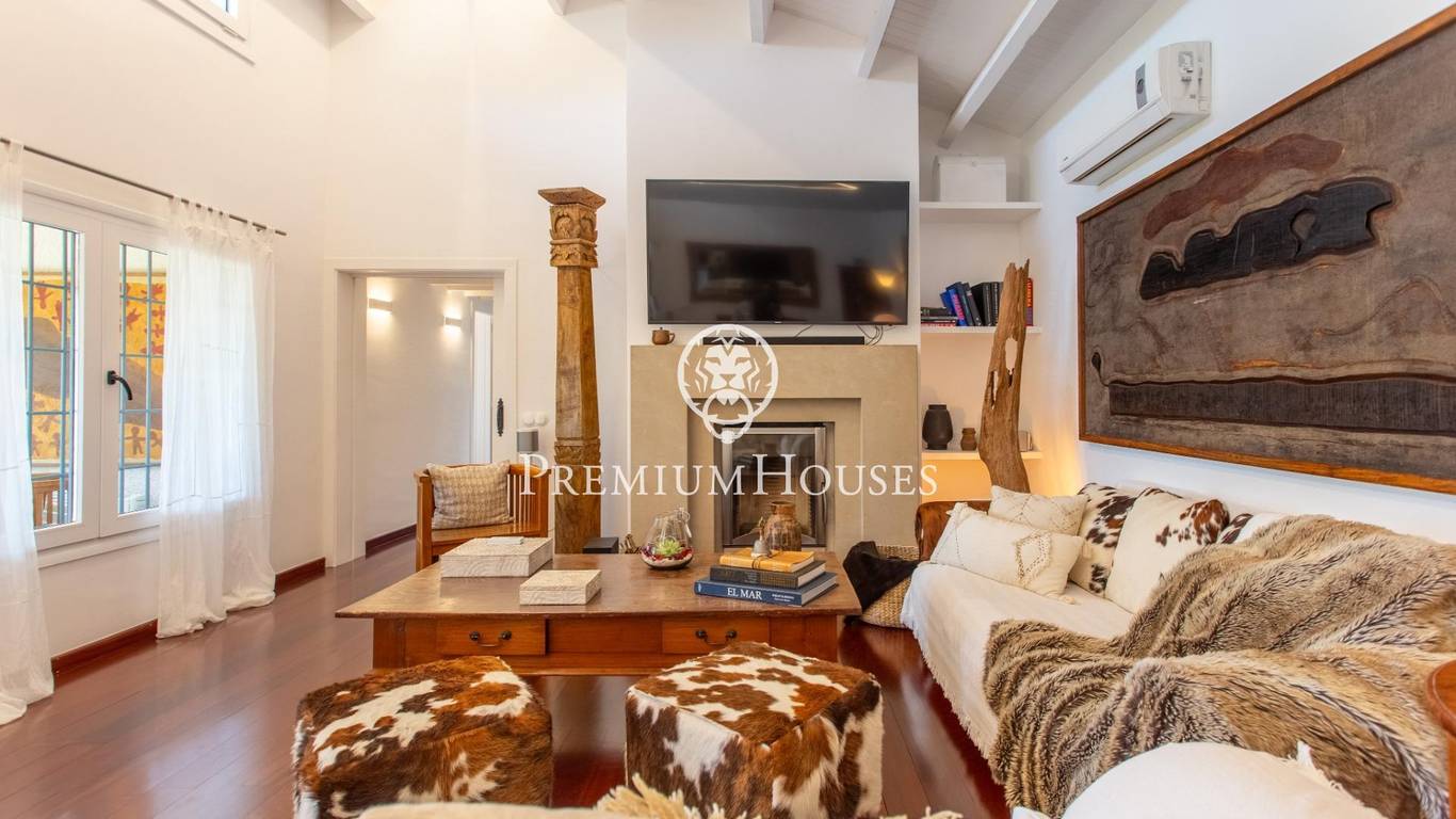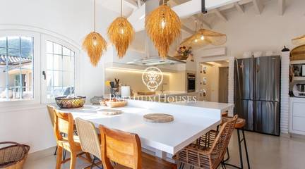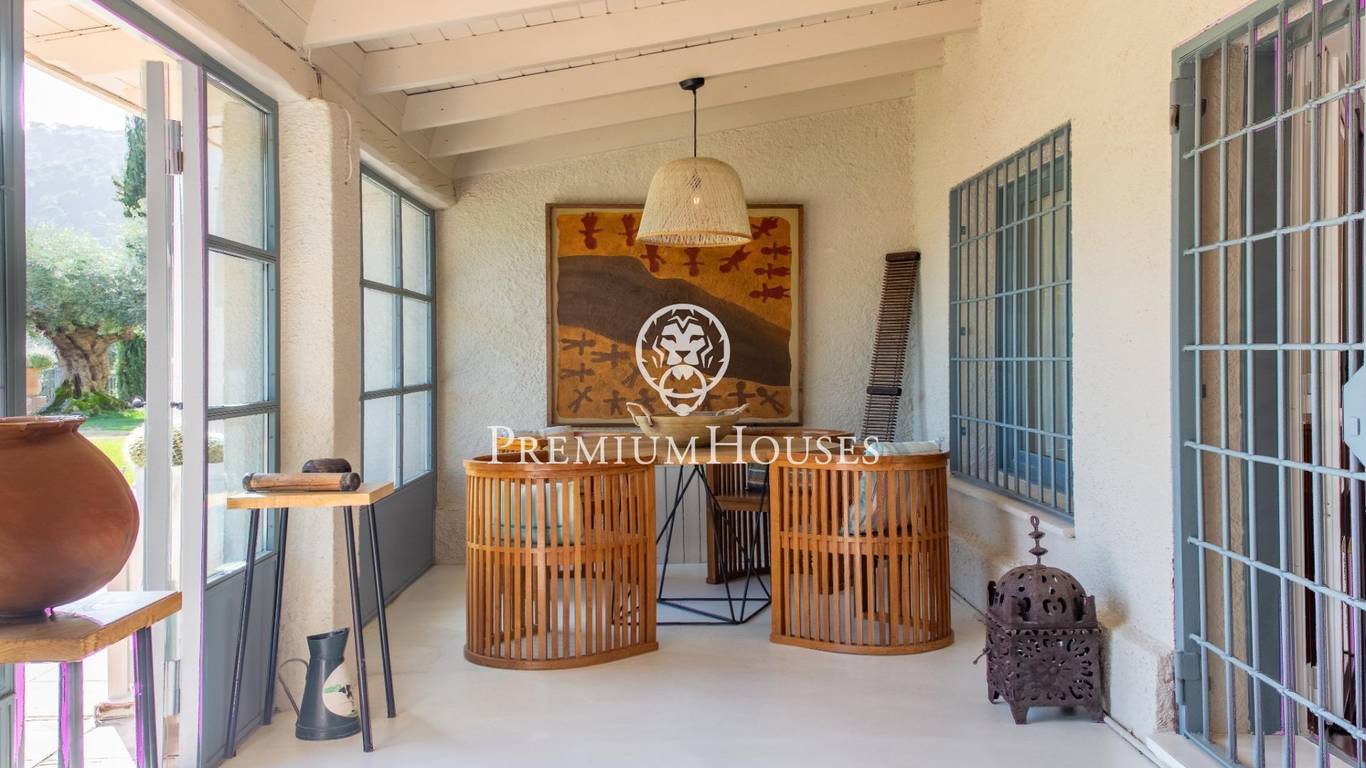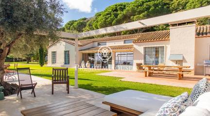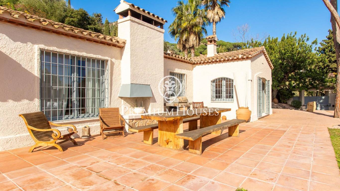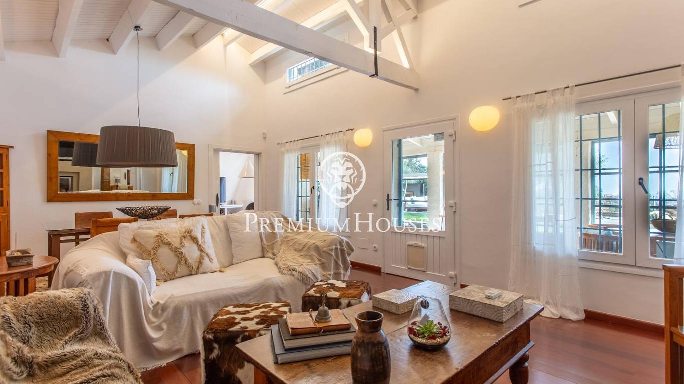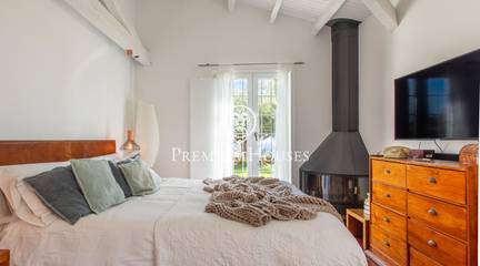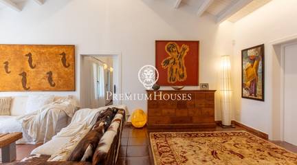 Located in one of the most prestigious residential areas of Cabrera de Mar, along the sought-after coastline of the Maresme, this exceptional villa offers a perfect balance of privacy, comfort and natural surroundings. Set on an impressive 5,400 m landscaped plot, the property enjoys breathtaking panoramic views of the sea, the mountains and the city skyline, creating a truly privileged living environment throughout the year.One of its most distinctive features is the convenient single-level layout, providing both practicality and refined elegance. The main residence is characterized by generous, light-filled interiors, including a sophisticated living room with fireplace and enclosed gallery area, a formal dining room ideal for entertaining, and a fully equipped kitchen with a welcoming breakfast area for everyday living.The night area has been thoughtfully designed to ensure maximum comfort. The spacious primary suite features its own fireplace, walk-in wardrobe and two full bathrooms, one of which includes a whirlpool bathtub. In addition, the property offers three double bedrooms, a medium-sized bedroom and a private office, ideal for remote work or study. Three further full bathrooms and a separate laundry room complete the interior layout.Outdoors, the beautifully maintained garden becomes one of the homes greatest highlights. It features a private swimming pool, gym, paddle tennis court and basketball court, as well as an elegant chill-out area surrounded by nature. The outdoor kitchen and barbecue area provide the perfect setting for hosting gatherings and enjoying al fresco dining in complete tranquility.Additional features such as air conditioning, alarm system, private garage and ample storage areas ensure comfort and security at all times. Its proximity to prestigious international schools and excellent transport connections makes this villa an outstanding choice for families seeking exclusivity without compromising accessibility.A unique residence designed to enjoy a distinguished lifestyle in an exceptional Mediterranean setting.