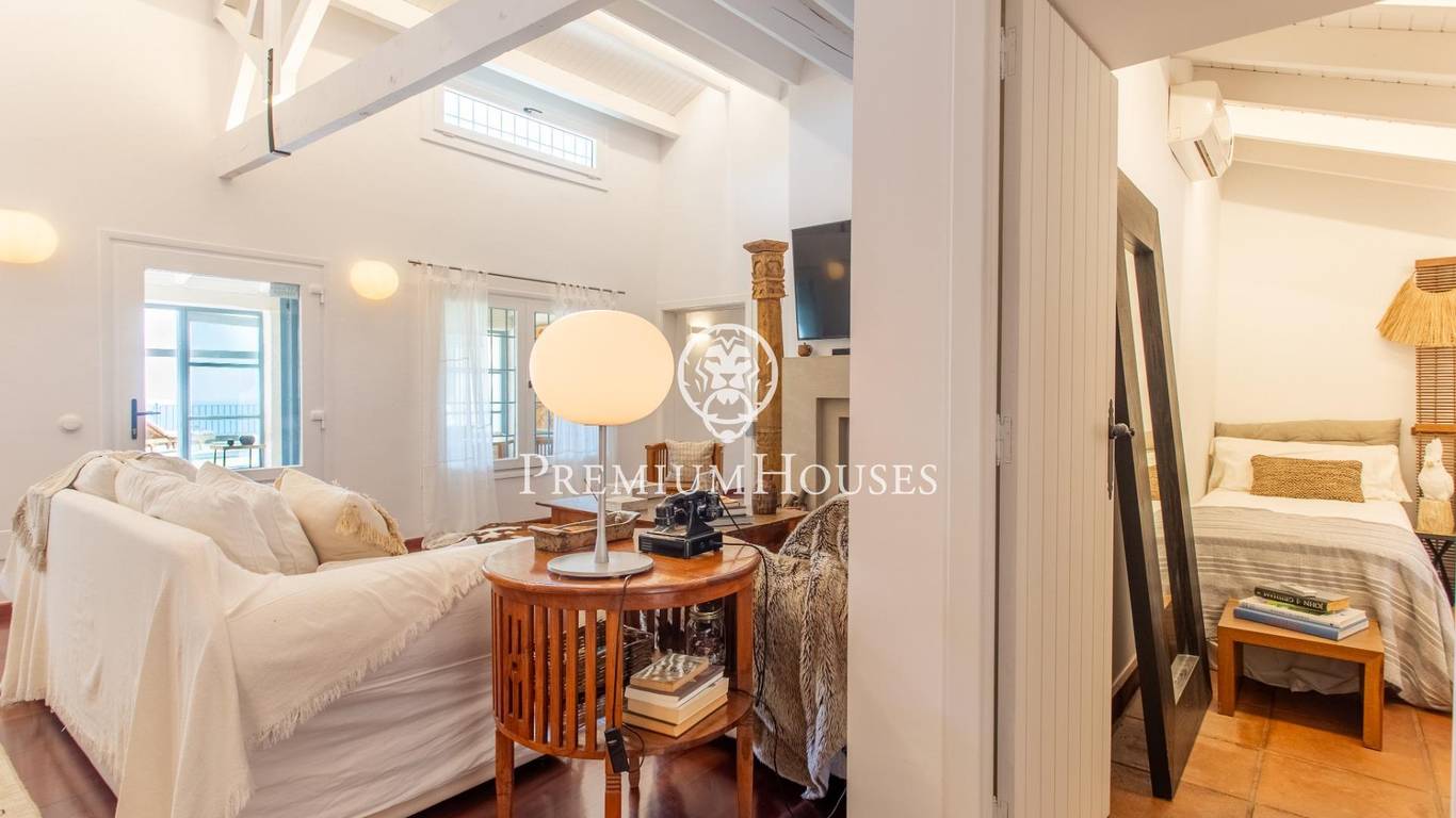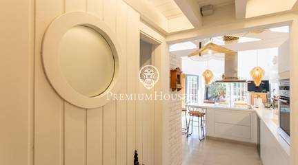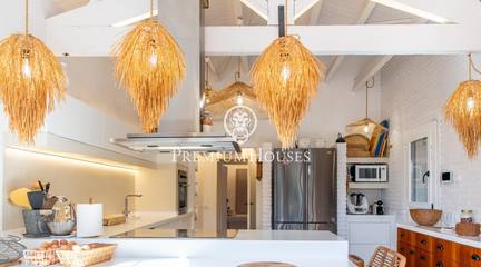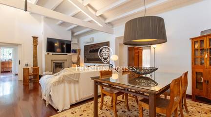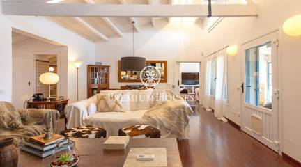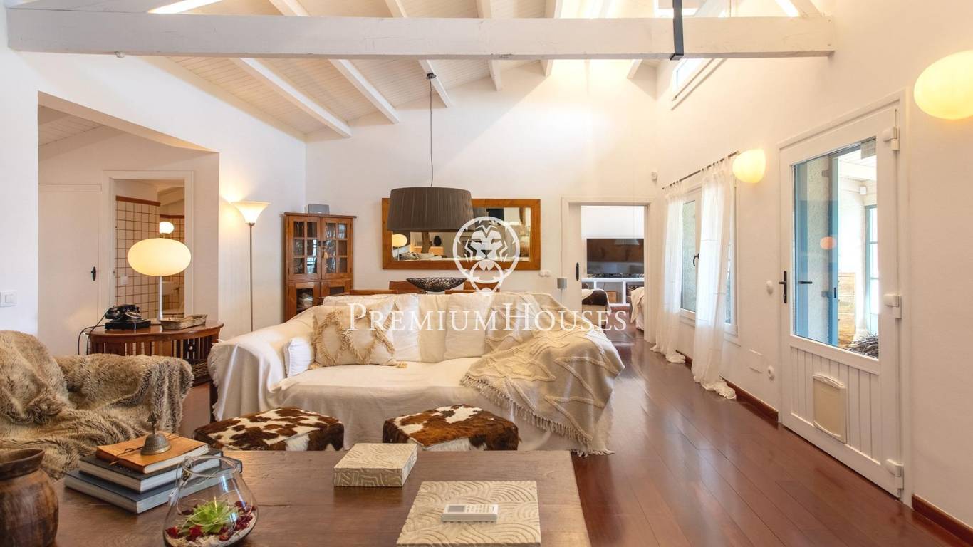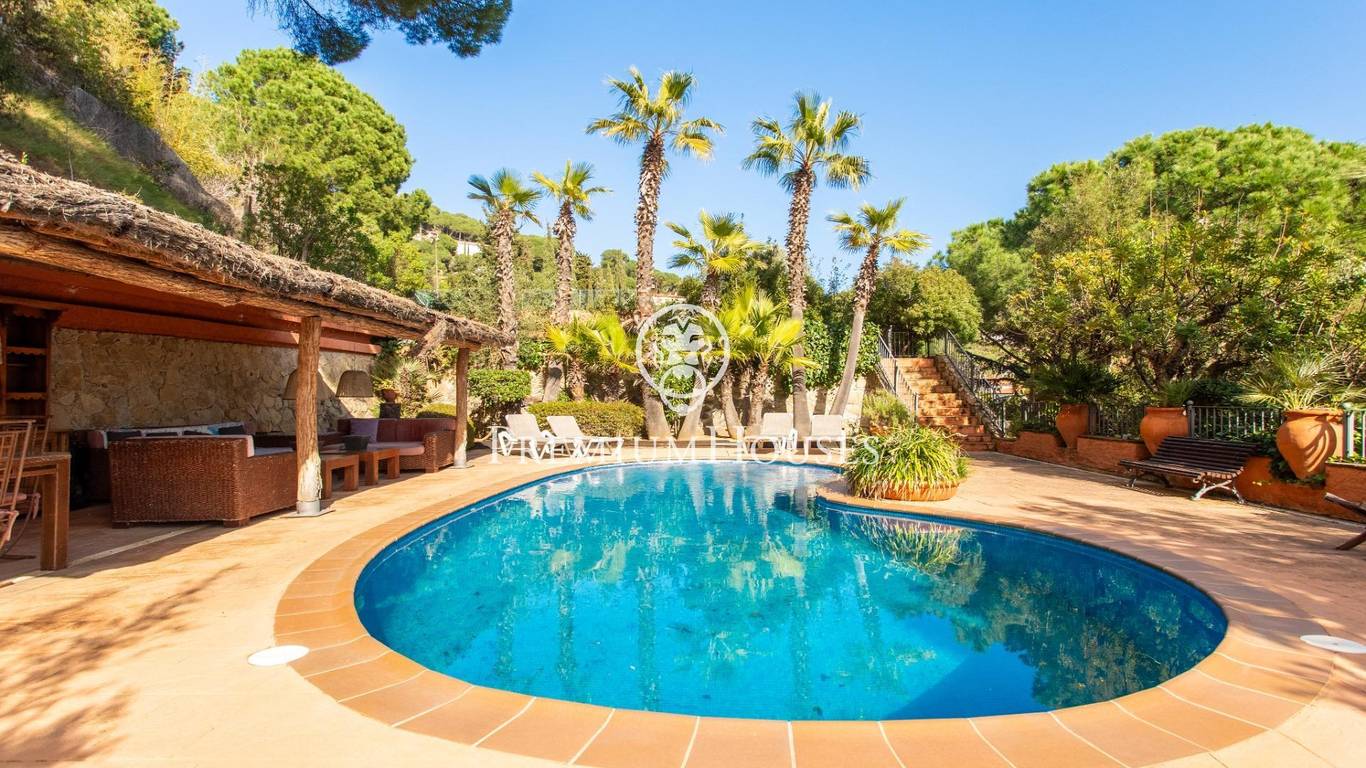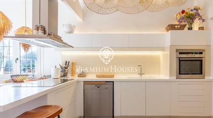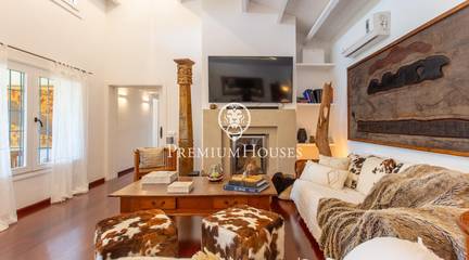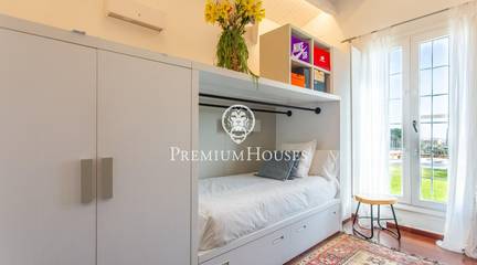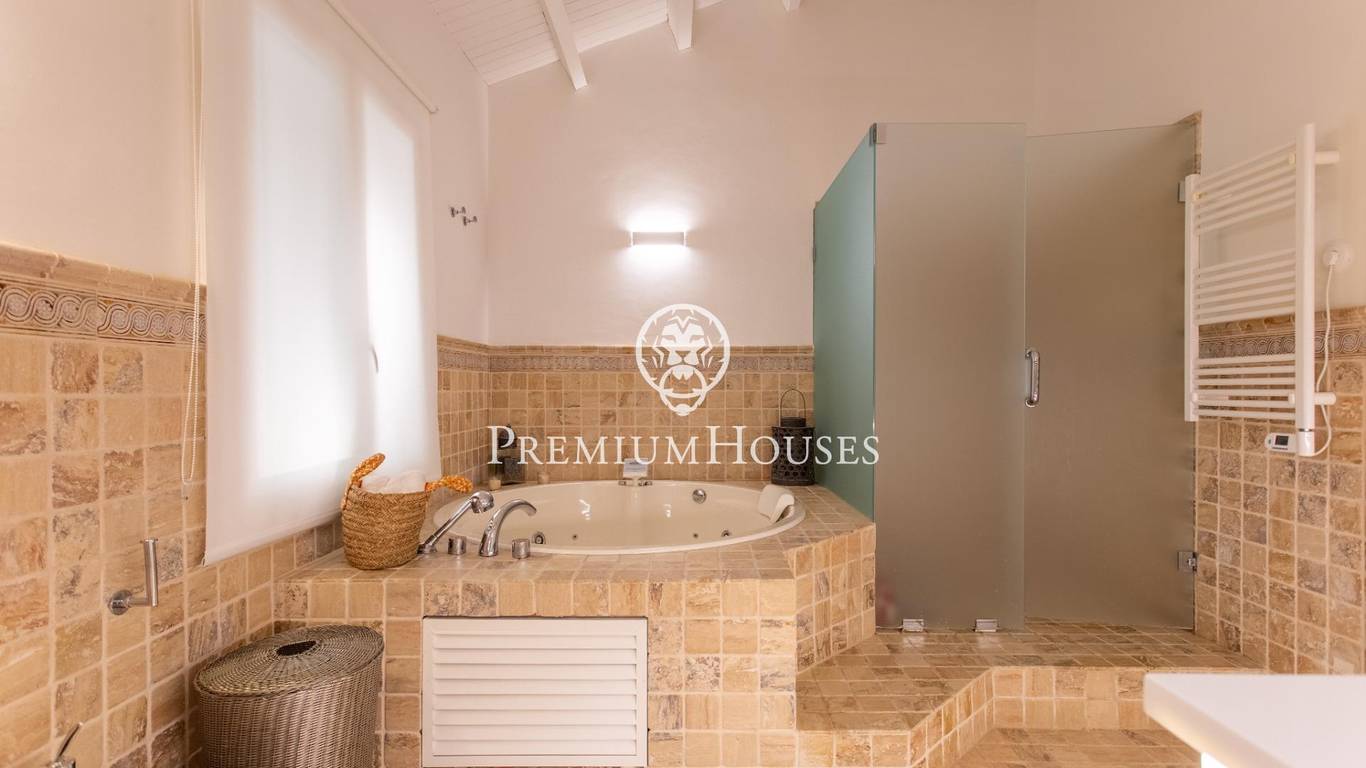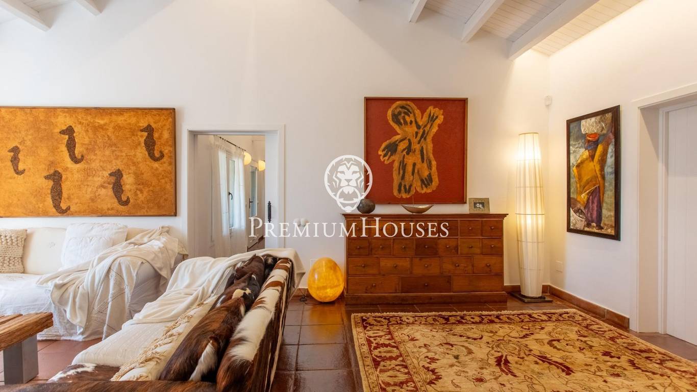 Located in one of the most prestigious residential areas of Cabrera de Mar, along the sought-after coastline of the Maresme, this exceptional villa offers a perfect balance of privacy, comfort and natural surroundings. Set on an impressive 5,400 m landscaped plot, the property enjoys breathtaking panoramic views of the sea, the mountains and the city skyline, creating a truly privileged living environment throughout the year.One of its most distinctive features is the convenient single-level layout, providing both practicality and refined elegance. The main residence is characterized by generous, light-filled interiors, including a sophisticated living room with fireplace and enclosed gallery area, a formal dining room ideal for entertaining, and a fully equipped kitchen with a welcoming breakfast area for everyday living.The night area has been thoughtfully designed to ensure maximum comfort. The spacious primary suite features its own fireplace, walk-in wardrobe and two full bathrooms, one of which includes a whirlpool bathtub. In addition, the property offers three double bedrooms, a medium-sized bedroom and a private office, ideal for remote work or study. Three further full bathrooms and a separate laundry room complete the interior layout.Outdoors, the beautifully maintained garden becomes one of the homes greatest highlights. It features a private swimming pool, gym, paddle tennis court and basketball court, as well as an elegant chill-out area surrounded by nature. The outdoor kitchen and barbecue area provide the perfect setting for hosting gatherings and enjoying al fresco dining in complete tranquility.Additional features such as air conditioning, alarm system, private garage and ample storage areas ensure comfort and security at all times. Its proximity to prestigious international schools and excellent transport connections makes this villa an outstanding choice for families seeking exclusivity without compromising accessibility.A unique residence designed to enjoy a distinguished lifestyle in an exceptional Mediterranean setting.