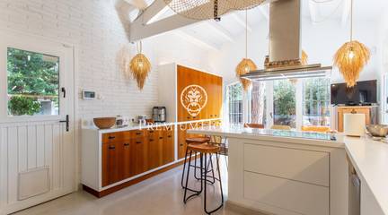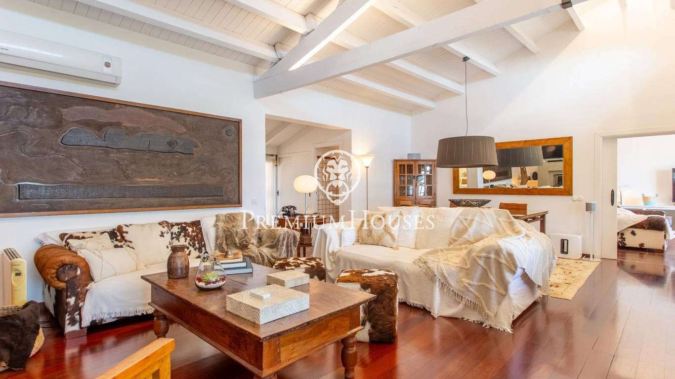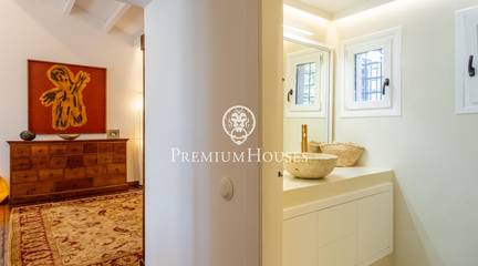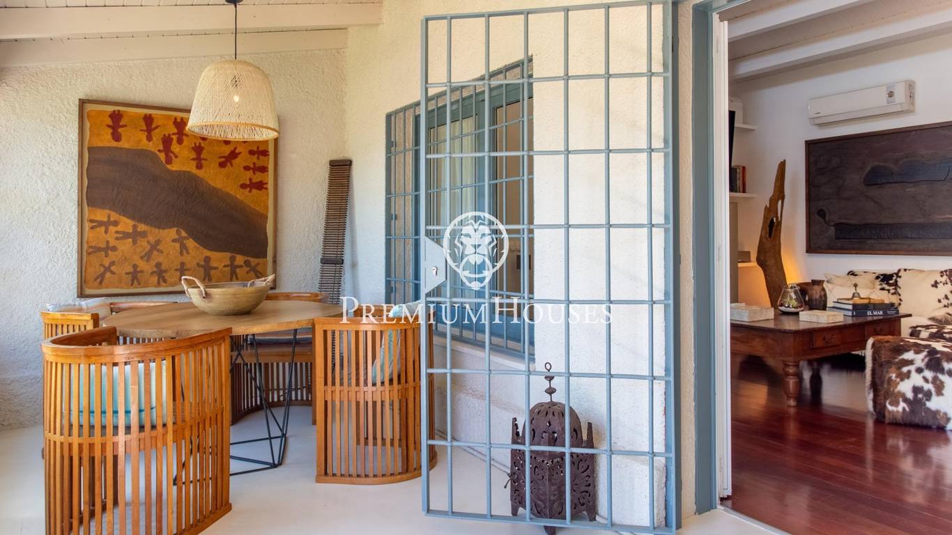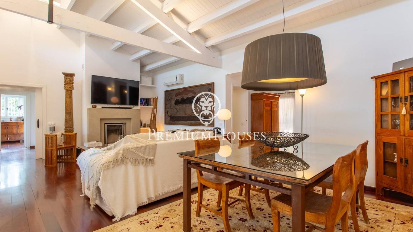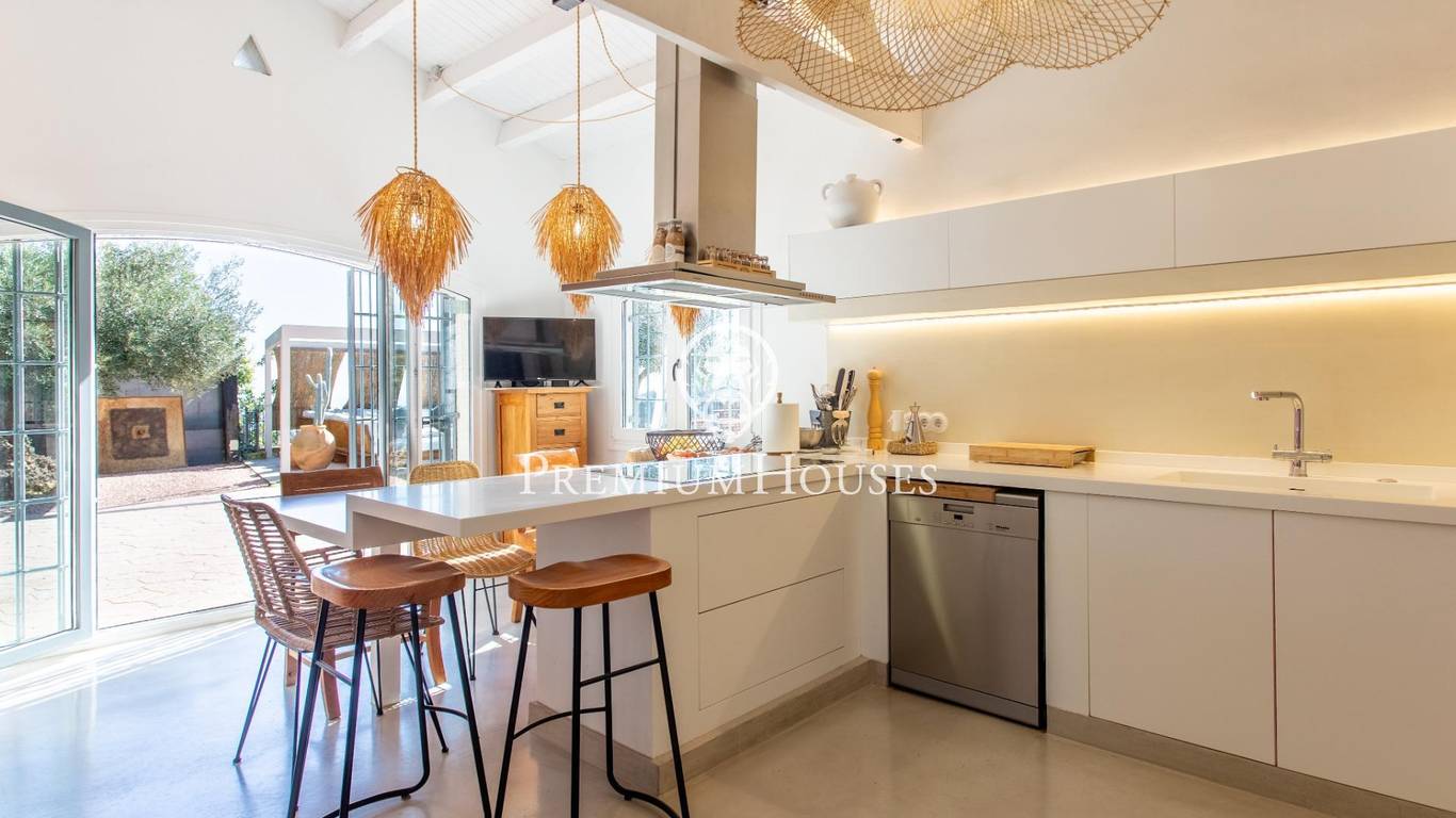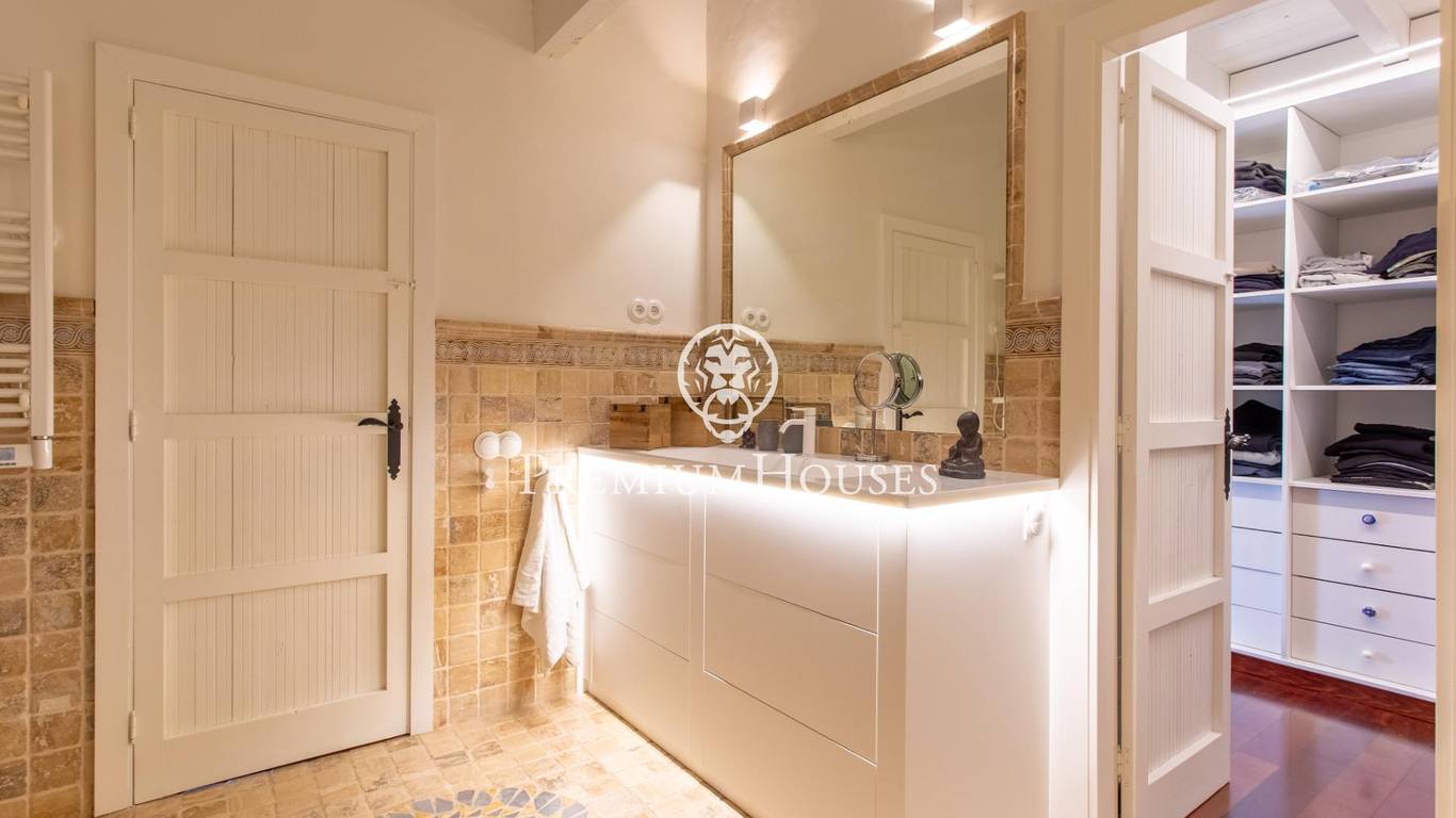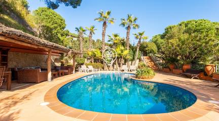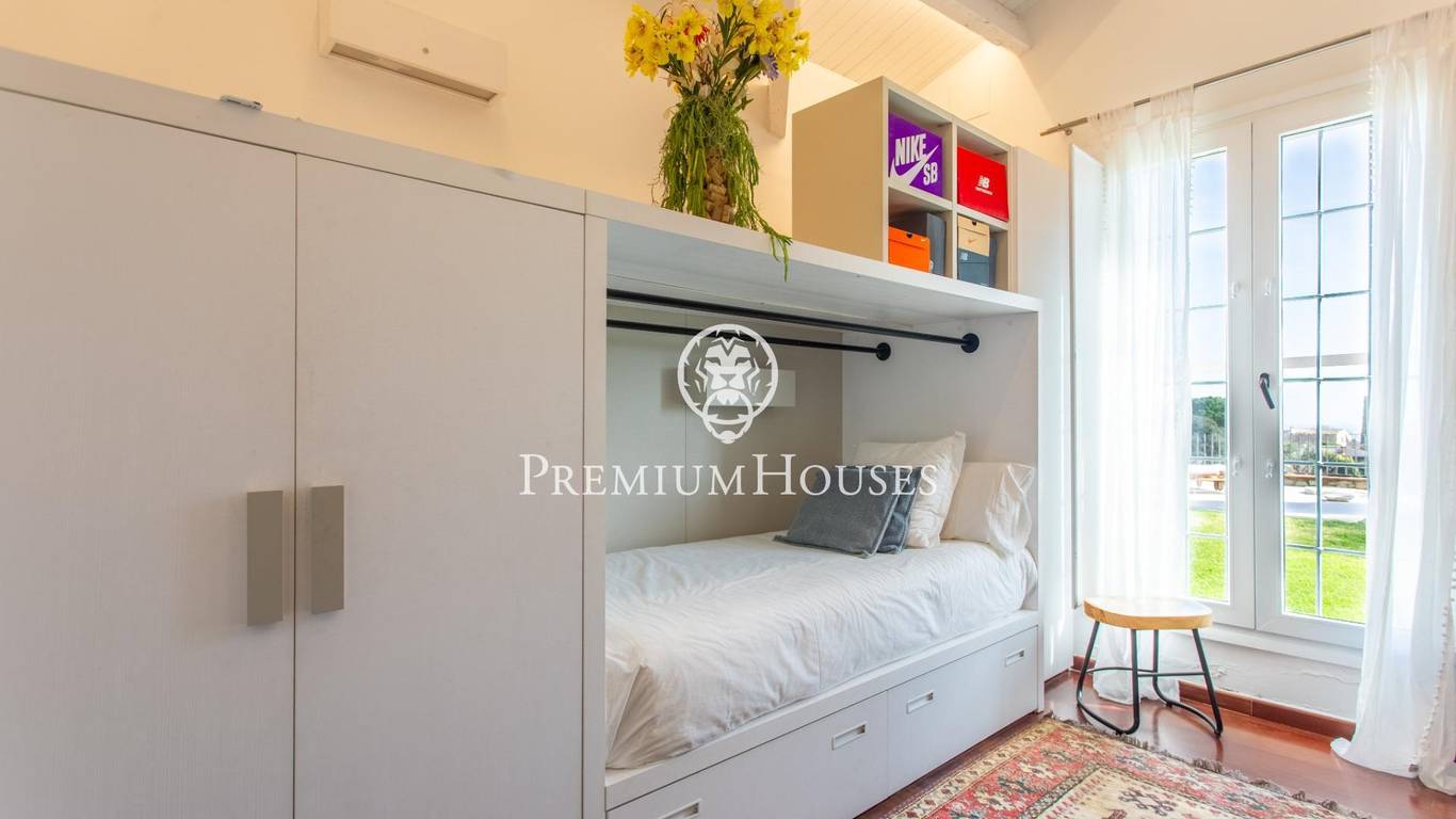 Located in one of the most prestigious residential areas of Cabrera de Mar, along the sought-after coastline of the Maresme, this exceptional villa offers a perfect balance of privacy, comfort and natural surroundings. Set on an impressive 5,400 m landscaped plot, the property enjoys breathtaking panoramic views of the sea, the mountains and the city skyline, creating a truly privileged living environment throughout the year.One of its most distinctive features is the convenient single-level layout, providing both practicality and refined elegance. The main residence is characterized by generous, light-filled interiors, including a sophisticated living room with fireplace and enclosed gallery area, a formal dining room ideal for entertaining, and a fully equipped kitchen with a welcoming breakfast area for everyday living.The night area has been thoughtfully designed to ensure maximum comfort. The spacious primary suite features its own fireplace, walk-in wardrobe and two full bathrooms, one of which includes a whirlpool bathtub. In addition, the property offers three double bedrooms, a medium-sized bedroom and a private office, ideal for remote work or study. Three further full bathrooms and a separate laundry room complete the interior layout.Outdoors, the beautifully maintained garden becomes one of the homes greatest highlights. It features a private swimming pool, gym, paddle tennis court and basketball court, as well as an elegant chill-out area surrounded by nature. The outdoor kitchen and barbecue area provide the perfect setting for hosting gatherings and enjoying al fresco dining in complete tranquility.Additional features such as air conditioning, alarm system, private garage and ample storage areas ensure comfort and security at all times. Its proximity to prestigious international schools and excellent transport connections makes this villa an outstanding choice for families seeking exclusivity without compromising accessibility.A unique residence designed to enjoy a distinguished lifestyle in an exceptional Mediterranean setting.