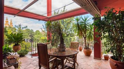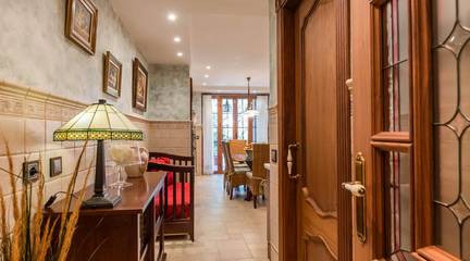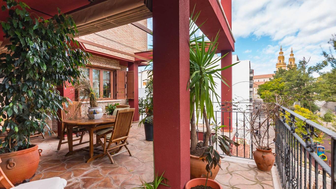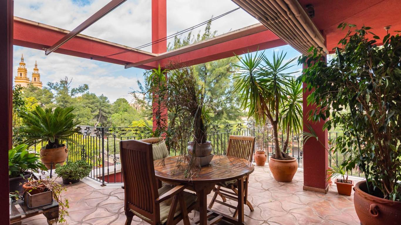 Al cruzar el amplio recibidor, la luz te envuelve desde el primer momento. Un gran salón con chimenea y techos decorados con molduras y rosetones abre paso a la terraza, desde la que podrás disfrutar de las vistas abiertas a la plaza, el lugar perfecto para los desayunos tranquilos o las noches de verano.