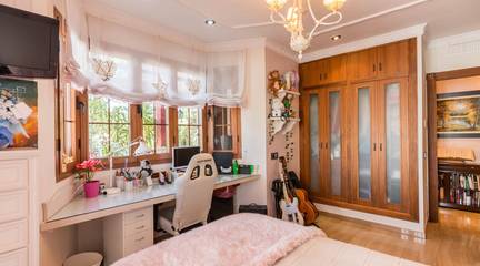 La zona privada ofrece tres amplios dormitorios y un despacho, uno de ellos con baño en suite, además de un completo segundo baño. Cada estancia es generosa en metros, cómoda y bañada por la luz natural que caracteriza a toda la vivienda, ademas todas disponen de internet por cable, así como hilo musical y toldos.