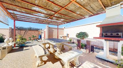 La parcela es un auténtico paraíso al aire libre, pudiendo de disfrutar del buen tiempo con zona de barbacoa, para poder dedicar tiempo a reuniones y comidas familiares.