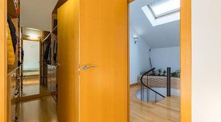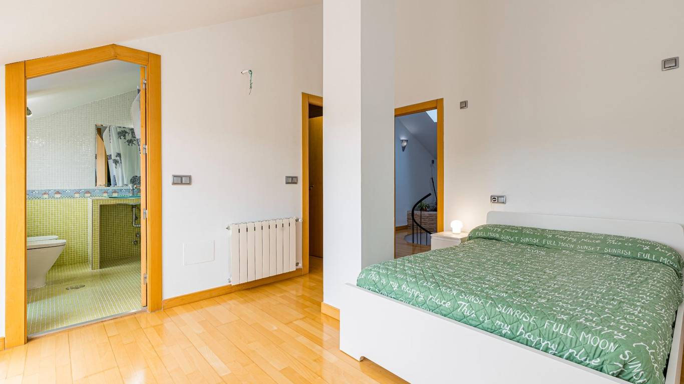En la primera planta descubrirás dormitorios abuhardillados llenos encanto cada uno diseñado como suites privadas, ofreciendo acceso directo a una terraza maravillosa desde donde contemplar atardeceres mágicos. No podemos olvidar mencionar el sótano: amplio garaje apto para varios coches acompañado por un despacho espacioso perfecto para trabajar cómodamente desde casa así como lavadero funcional.