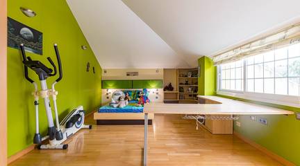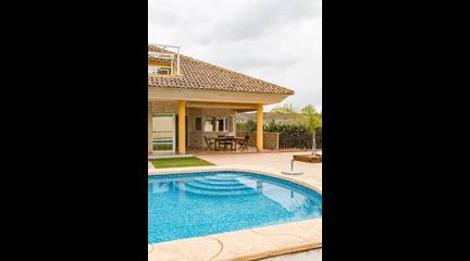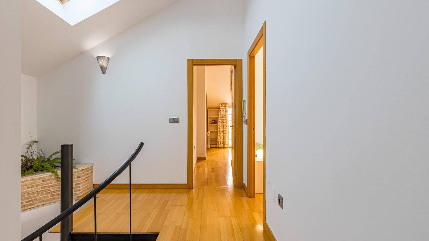 Sumérgete en la elegancia y el confort de este espectacular chalet situado en la apacible y pintoresca zona de La Alcayna. Al llegar, serás recibido por unas encantadoras escaleras que te conducirán a un refugio rodeado de naturaleza. En su generosa planta baja, destaca un hermoso dormitorio principal con una amplitud impresionante de 30m, vestidor privado y un baño sofisticado equipado con bañera semi redonda y ducha moderna además hay otro acogedor dormitorio para visitas o familia. El salón comedor es simplemente deslumbrante (60m), inundado de luz natural e ideal para compartir momentos inolvidables junto a los seres queridos. La cocina contemporánea está completamente equipada e incluye una isla central perfecta para quienes disfrutan del arte culinario conecta directamente al relajante porche delantero donde podrás disfrutar las vistas hacia tu coqueta piscina mientras saboreas deliciosos asados preparados en su práctica barbacoa situada estratégicamente detrás del mismo.