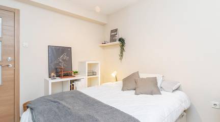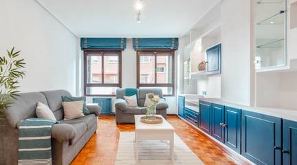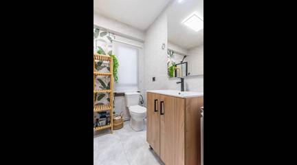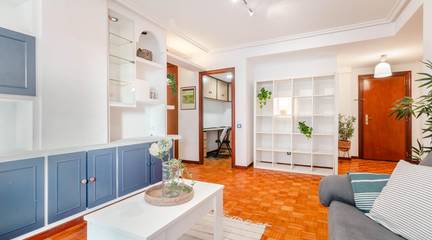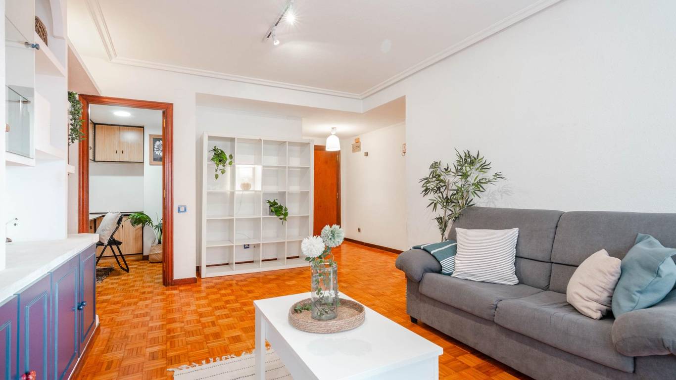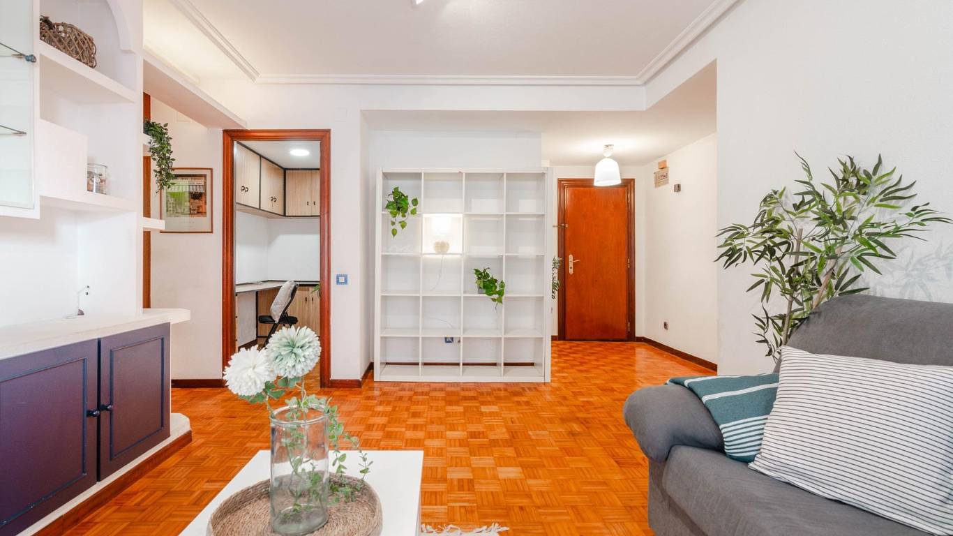 La vivienda cuenta con 68 m construidos y 61 m útiles. Al entrar encontramos un salón amplio y luminoso, con grandes ventanales y estanterías de pladur integradas que aportan carácter y almacenaje.
