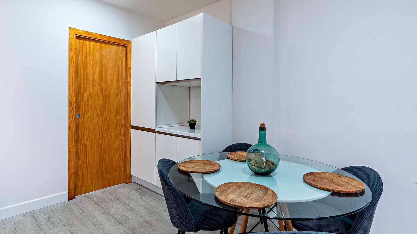 El piso se sitúa en la novena planta del edificio, lo que le proporciona luminosidad y vistas despejadas. Dispone de: